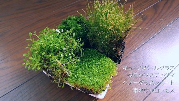 前景草3点セット+α キューバパールグラス&ヘアーグラスショート&グロッソスティグマ+α 南米ウィローモス A3