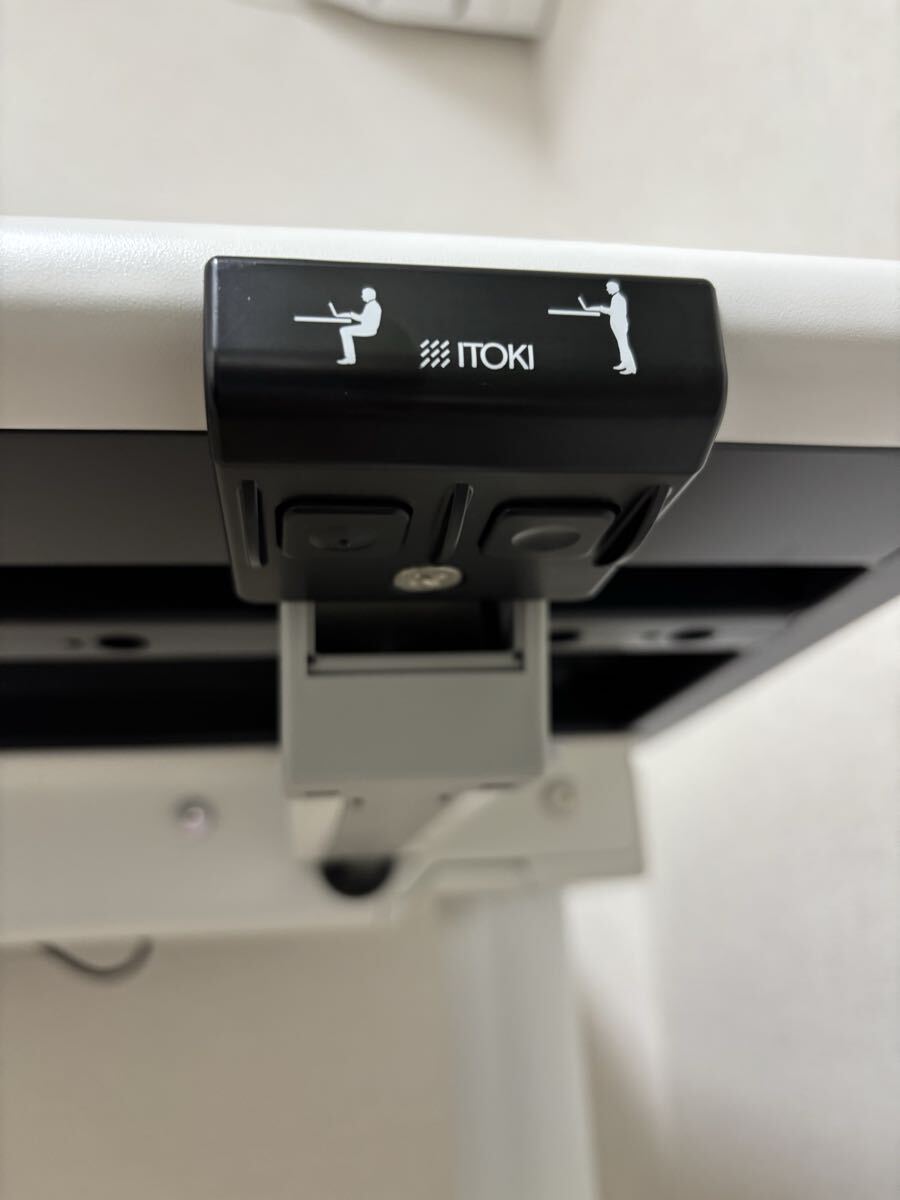 オフィスファニチャーブランド イトーキのトイロデスク 昇降スイッチタイプです。働き方は十人十色。「トイロ」は一人ひとりの体格差やワークスタイルの変化に合わせて、テーブルの高さを自由に変えられる昇降式デスクシリーズです。ワーカー一人ひとりにフィットした環境をつくることで「健康増進」、「生産性向上」をサポートします。机上面の高さは65 ~125cmの範囲で調節可能。ボタンひとつで操作できます。昇降動作中に障害物を検知すると自動的に停止し約3cmもどるセーフティリバース機能や、身体やモノをはさまない脚のセーフティ機構など安全面にも配慮した設計です。ケーブルガイドは床面までの配線をカバーでき、乱雑になりがちなケーブル類をすっきりまとめることができます。トイロデスクはグッドデザイン賞を受賞しております。