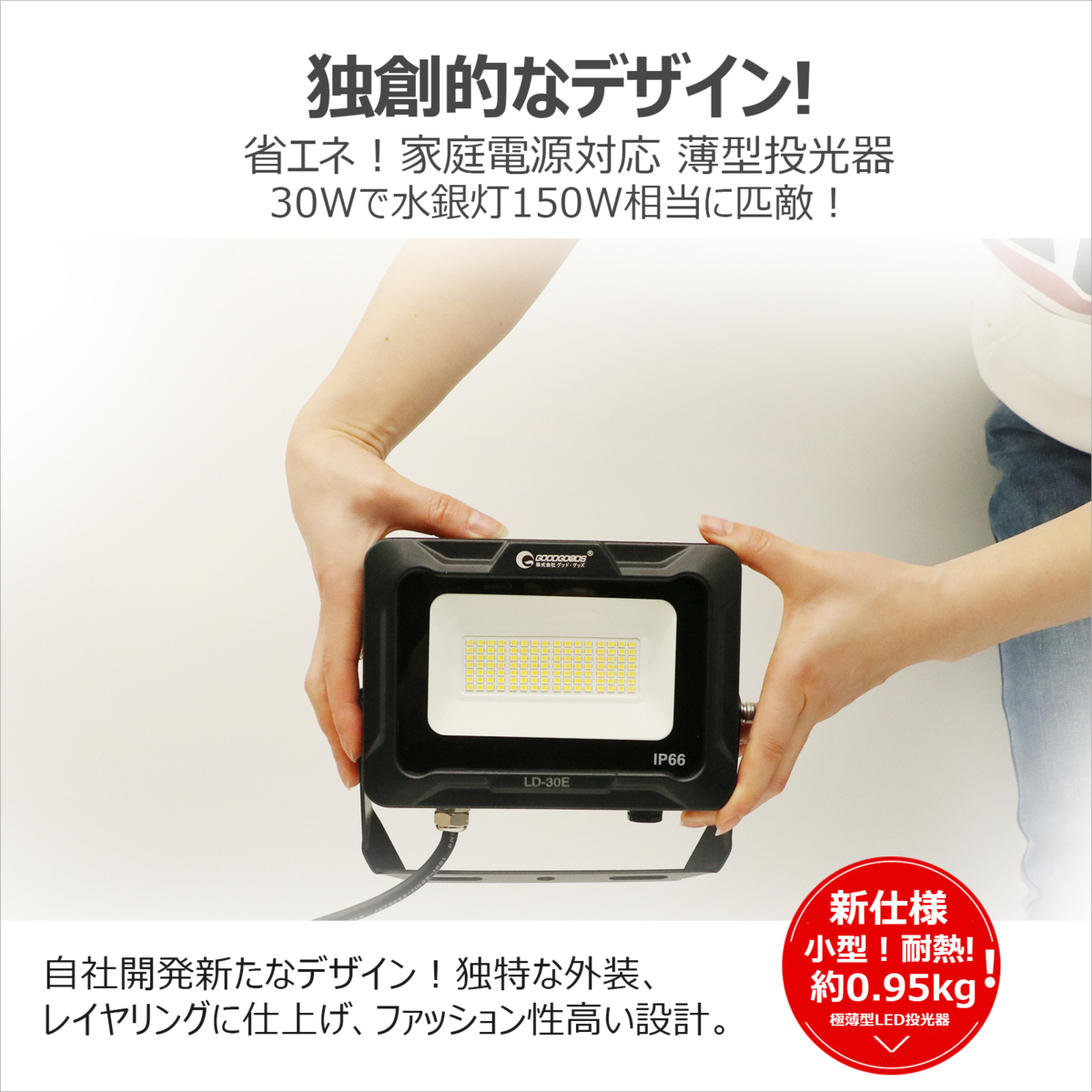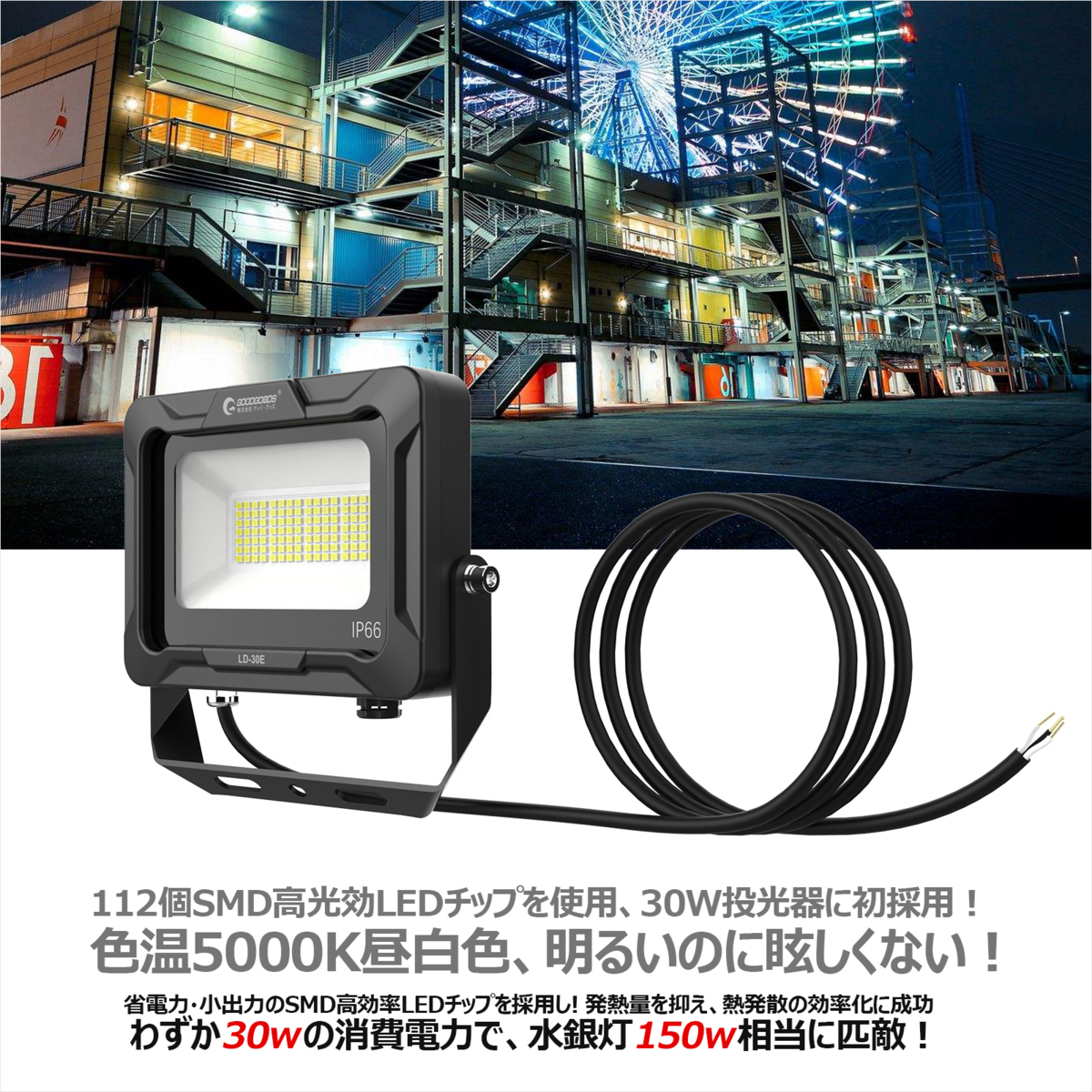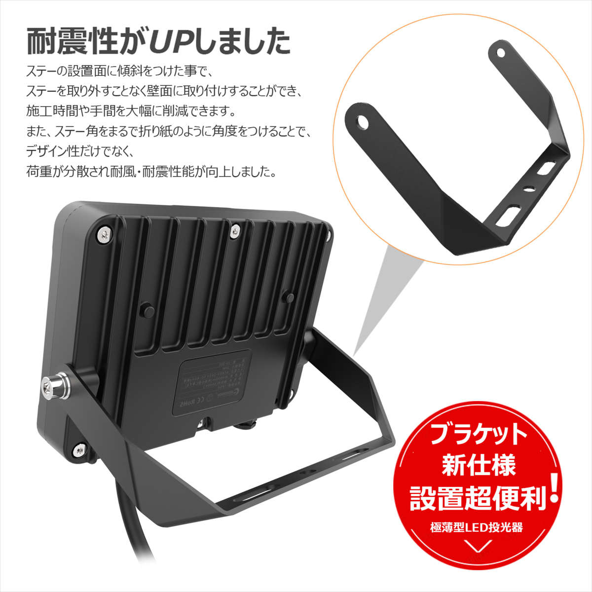 ポイント1:【LED・高輝度】 ◎112個高品質なLEDチップを30W投光器に初採用、約4500lmの圧倒的な明るさを実現し、120°の広範囲を照射します。 ◎省電力・小出力のSMD高効率LEDチップを採用することで、チップの発熱量を抑え、散熱効率を高くなります。効果よくLED周辺の熱だまりを防げ、使用寿命が延ばせます。 ◎すりガラスの採用!ガラス面には、すりガラス加工を施し光が拡散し、刺激的な眩しさを軽減します。 ◎ライト近くに影ができにくく目に優しく照射します。色温5000K 自然光に近い昼白色明るいのに眩しくないです! ポイント2:【2Mコード・PSE表示付き】 ◎コード長2M!コンセントまでの距離がある場合でも安心です。 ◎長さ2Mの電源コードはPSE表示付きの安心品質です。 ◎ステー300°角度調整と照射120°範囲が作動スペースを更に増大できます。 ポイント3:【一体型放熱フィンデザイン】 ◎一体型放熱フィンデザインを採用します。 ◎放熱性に優れているアルミボディー、ADC12アルミダイカスト素材を採用します! ポイント4:【アルミ素材+強化ガラス】 ◎アルミ素材+強化ガラスを贅沢に使い、従来品より耐久性が格段に向上しています。耐衝撃、耐振動、丈夫な設計で安全性・安定性・信頼性抜群です。 ◎製品の材質だけでなく、その設計や加工技術により製品寿命を大幅に引き上げました。 ポイント5:【結露防止用のフィルター・IP66防水】 ◎結露防止用のフィルターを採用します。 ◎筐体の底部には、防水性能はそのままに筐体内の余分な水分を逃がす通気弁を設けました。過度な湿度を逃しガラス面の結露・水だまりによる故障を防げます。 ◎IP66相当の防塵・防水性能!本体は 防水防雨仕様なので、工場・作業場だけでなく屋外での使用も可能です! ◎室外や室内の照明と看板、倉庫・作業場・安全照明としても最適です! ポイント6:いろいろなシーンで大活躍! ◎看板灯、駐車場灯、インテリア照明・ 樹木や店舗壁面などのライトアップ照明、看板照明や店内の演出用照明、屋外用照明としてご利用頂けます。 ◎公共場所、駐車場、事務所、展示場に使用、 街灯、公園、ホール、玄関常夜灯、町内防犯灯、夜間作業を行う際の照明として使用します! ◎大規模施設照明用に大いに役が立てます。AC95~135Vの広範囲で、産業施設からスポーツ施設全般に対応!ゴルフ練習場、スポーツ・テニスコート、駐車場、格納庫、工場、倉庫など様々な場面で活用できます。 |