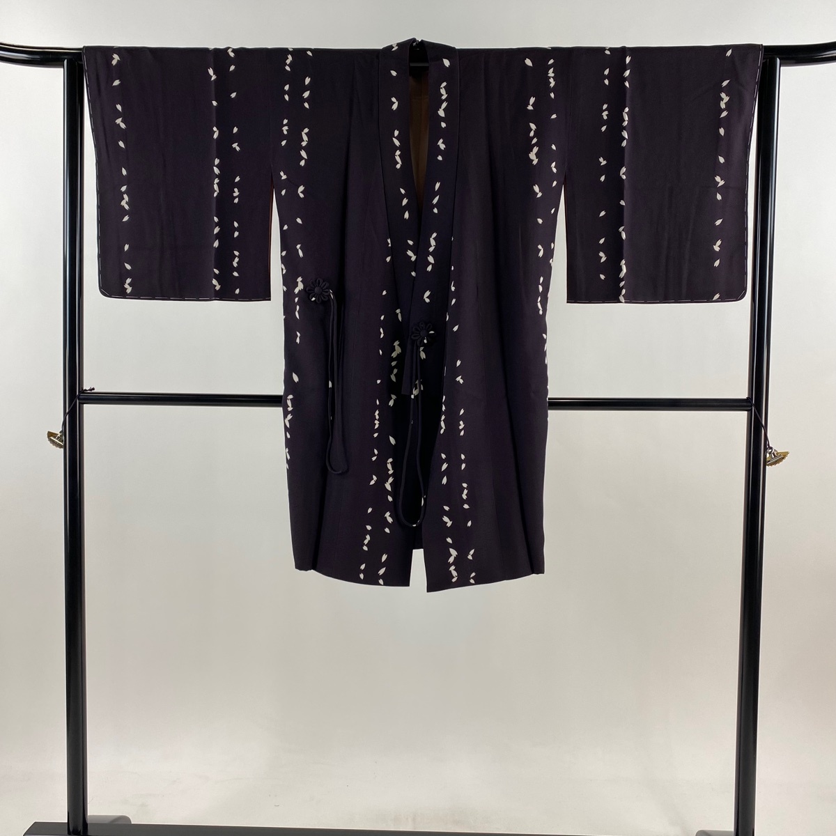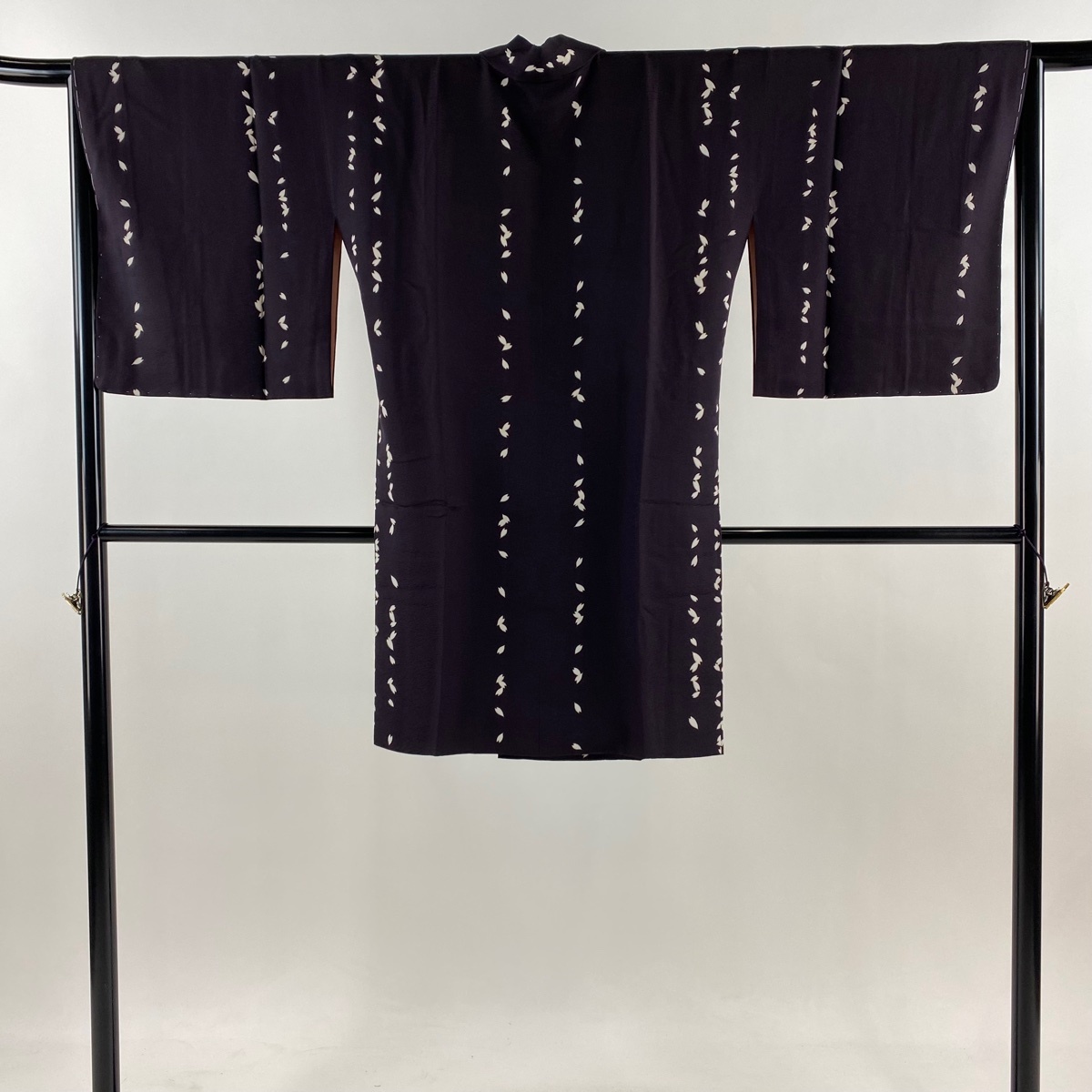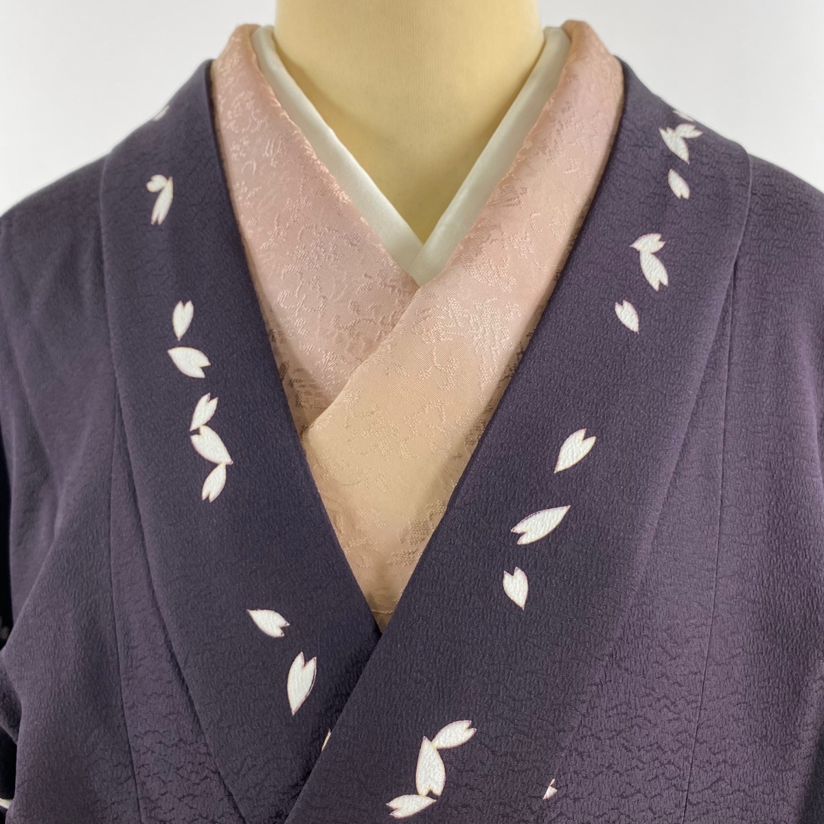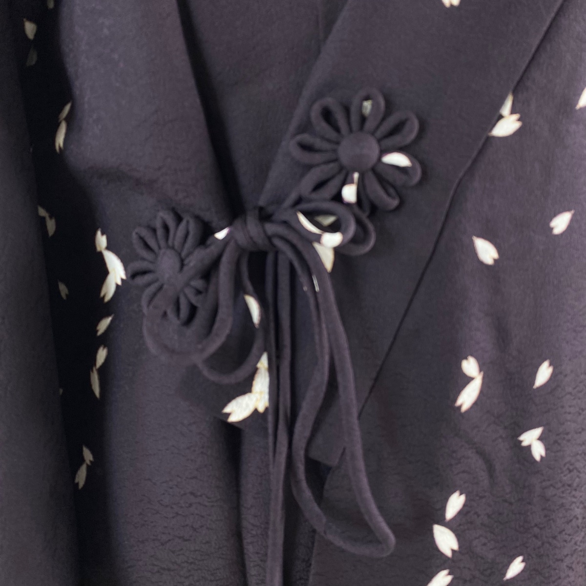 | 道中着 秀品 和装コート 着物衿 桜の花びら 濃紫 身丈99 裄丈66 M 正絹 【中古】 |