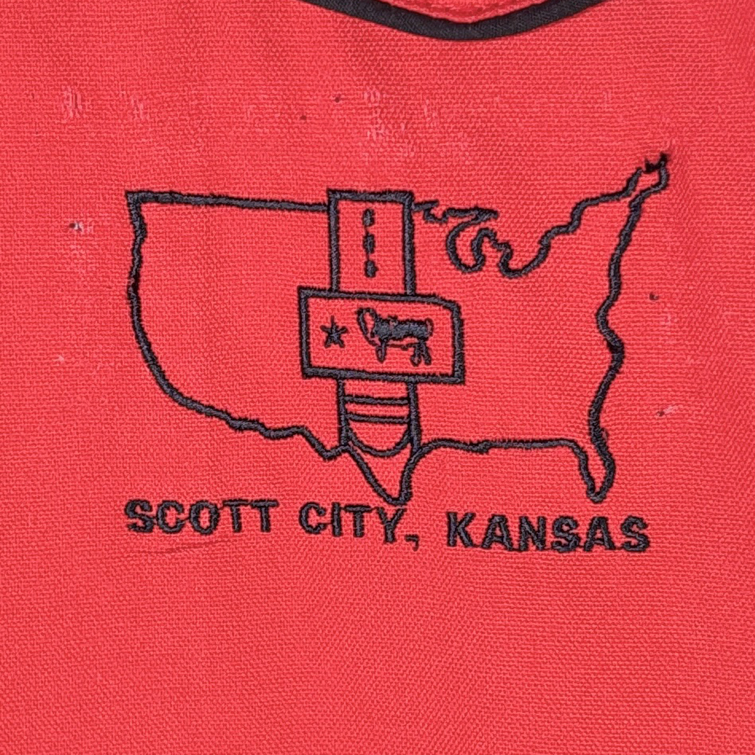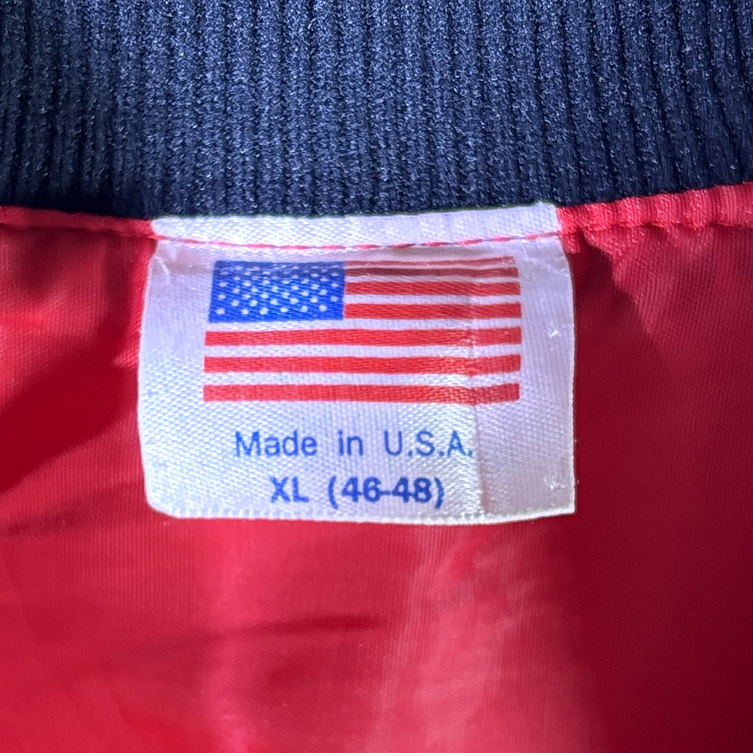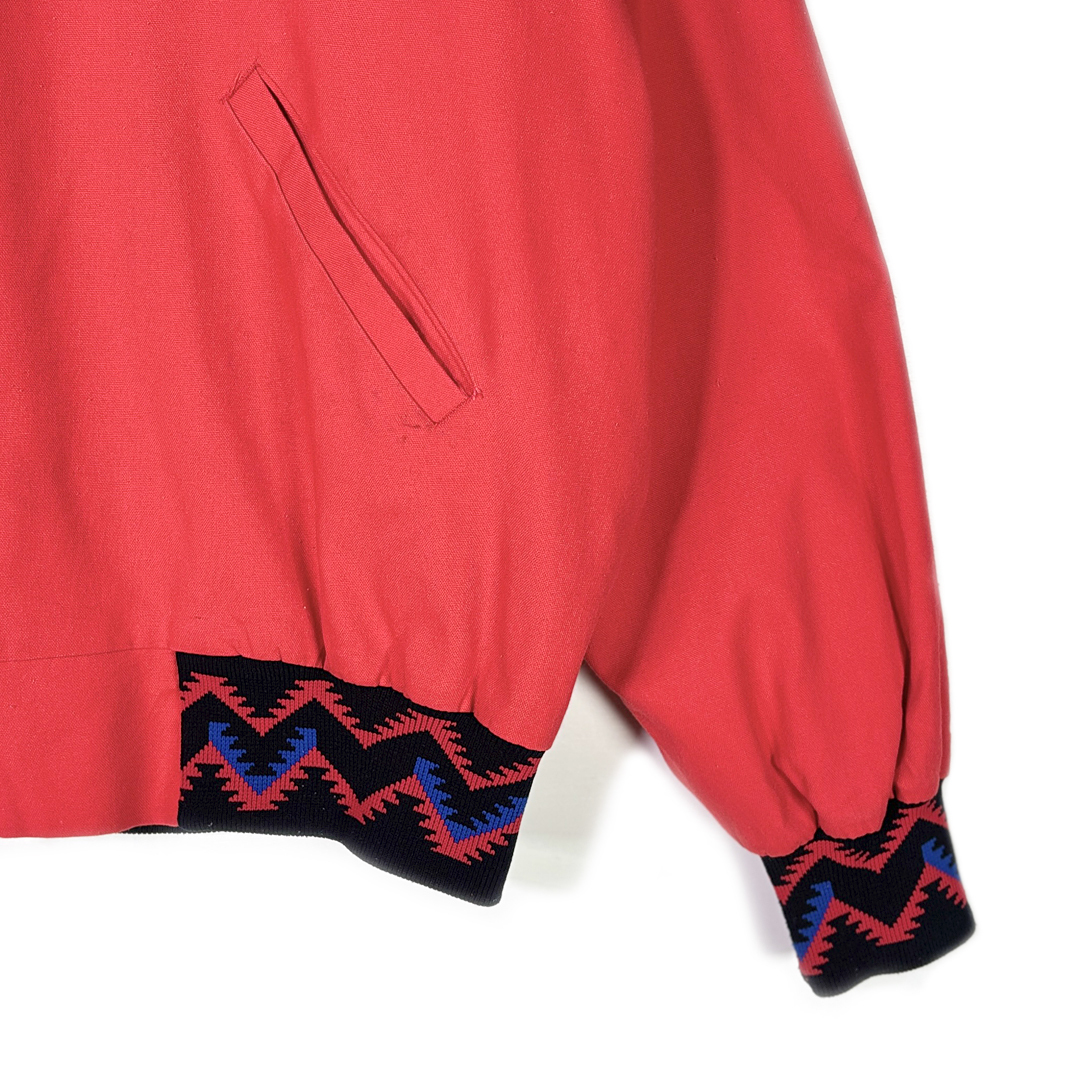 80s USA製 ヴィンテージコットンジャケット ウエスタン調 刺繍 ネイティブ柄 スコットシティ 赤 大きいサイズ XL 古着 DZ9045