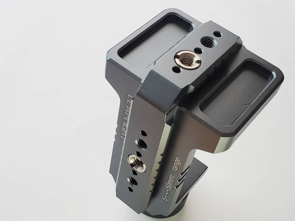 拡張性抜群、1/4インチネジ穴、3/8インチネジ穴、NATOレールスロット付き、カメラ、ライト、マイクなど様々な機材を取り付け可能