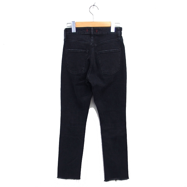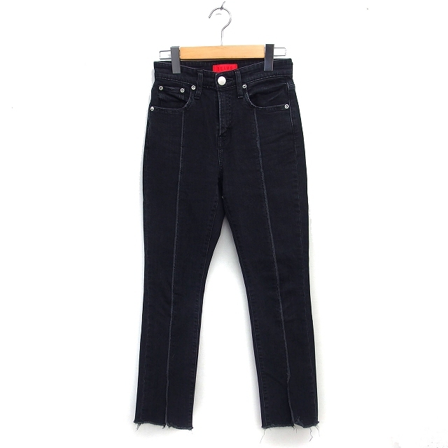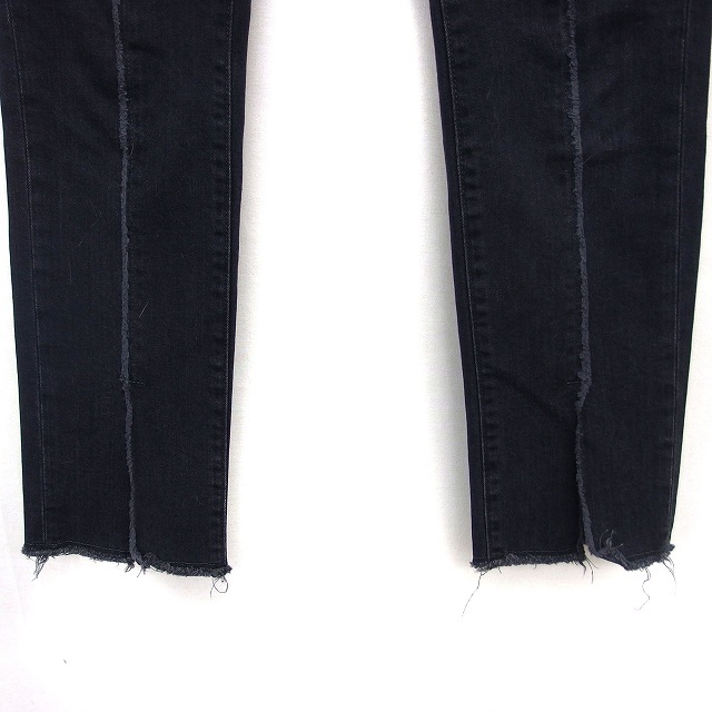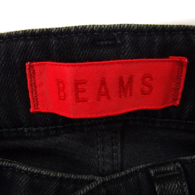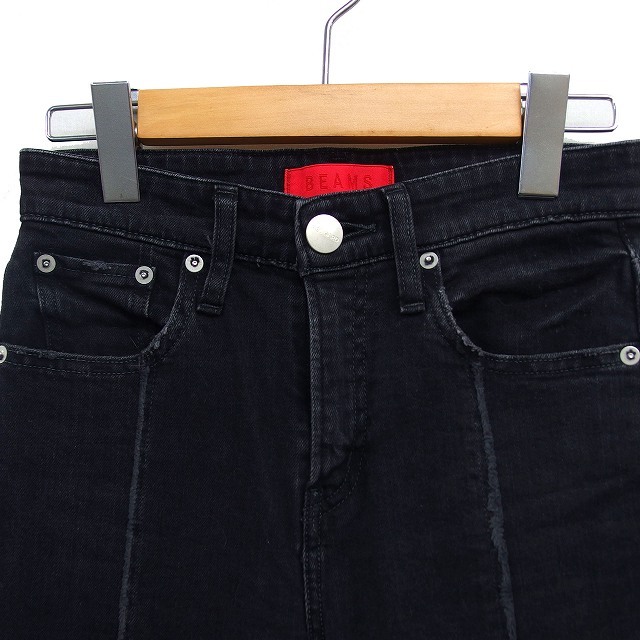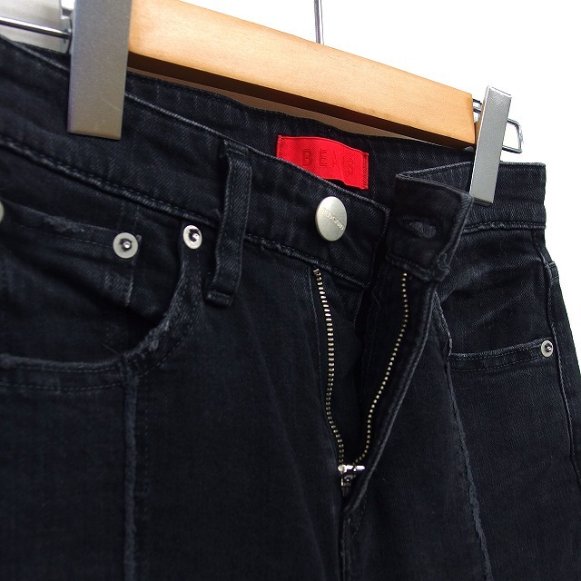 ビームス BEAMS デニム ジーンズ ストレート フリンジ スリット コットン 綿 ジップフライ 22 黒 ブラック /NT34 レディース