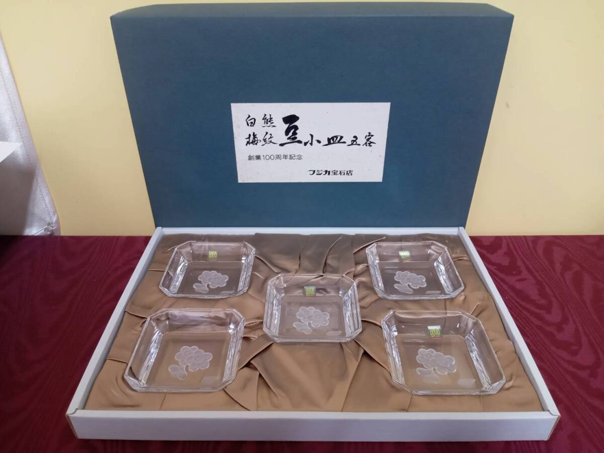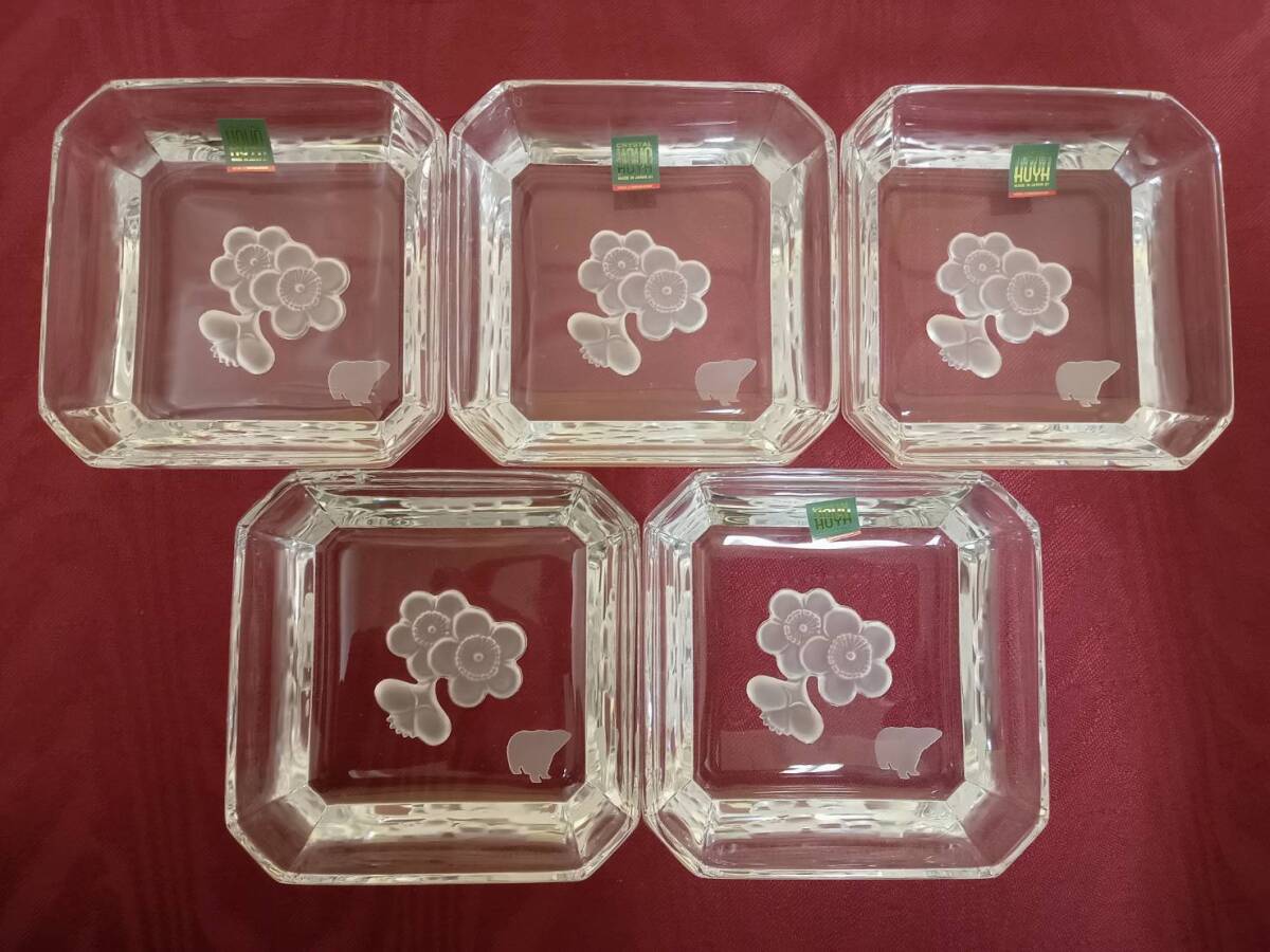 【HOYA クリスタル 白梅 豆小皿 5客】ガラス製 レトロ 和食器 レトロ【A1-1】1103