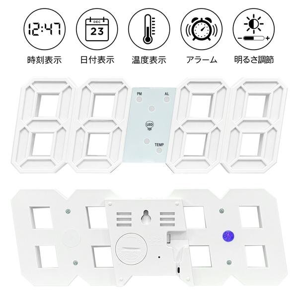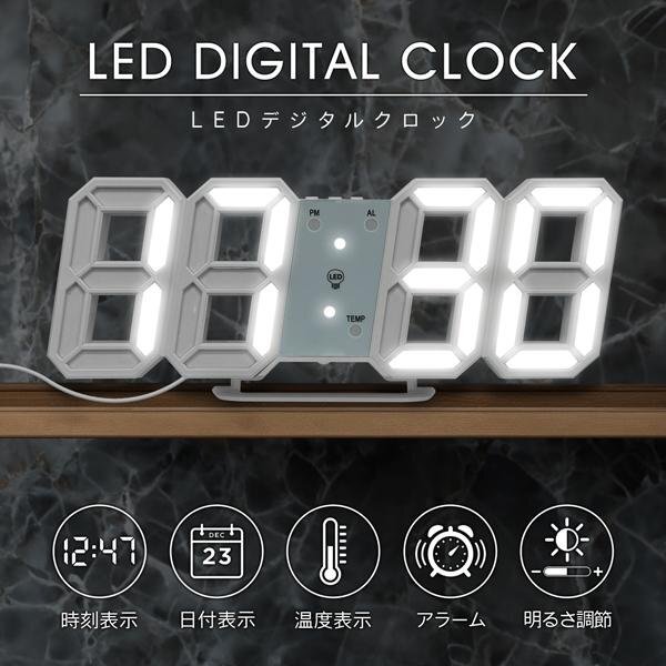 LEDデジタルクロック 目覚まし時計 日付 時刻 温度 アラーム 壁掛け時計 インテリア時計 LED おしゃれ 送料無料 5M◇ LEDクロックW