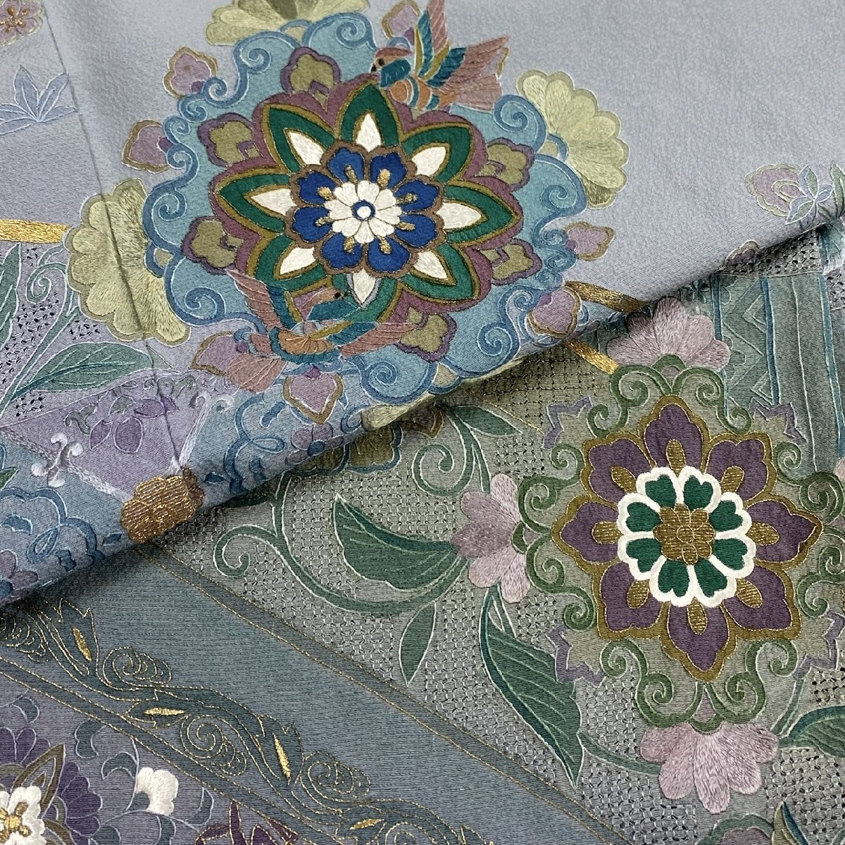 着物月花 総刺繍 蘇州刺繍 仙頭刺繍 ぼかし染 装飾華文様 訪問着 正絹 金糸 ki6497
