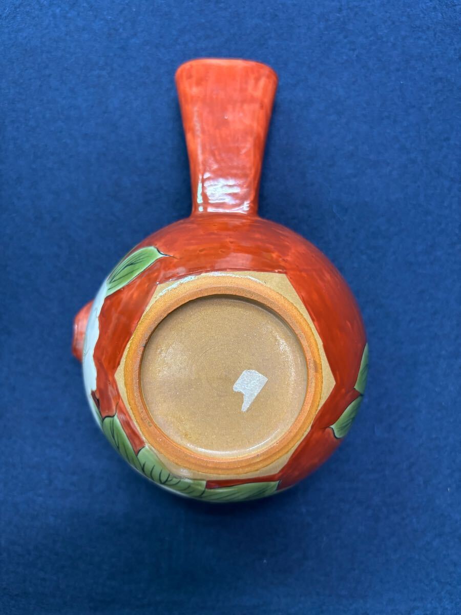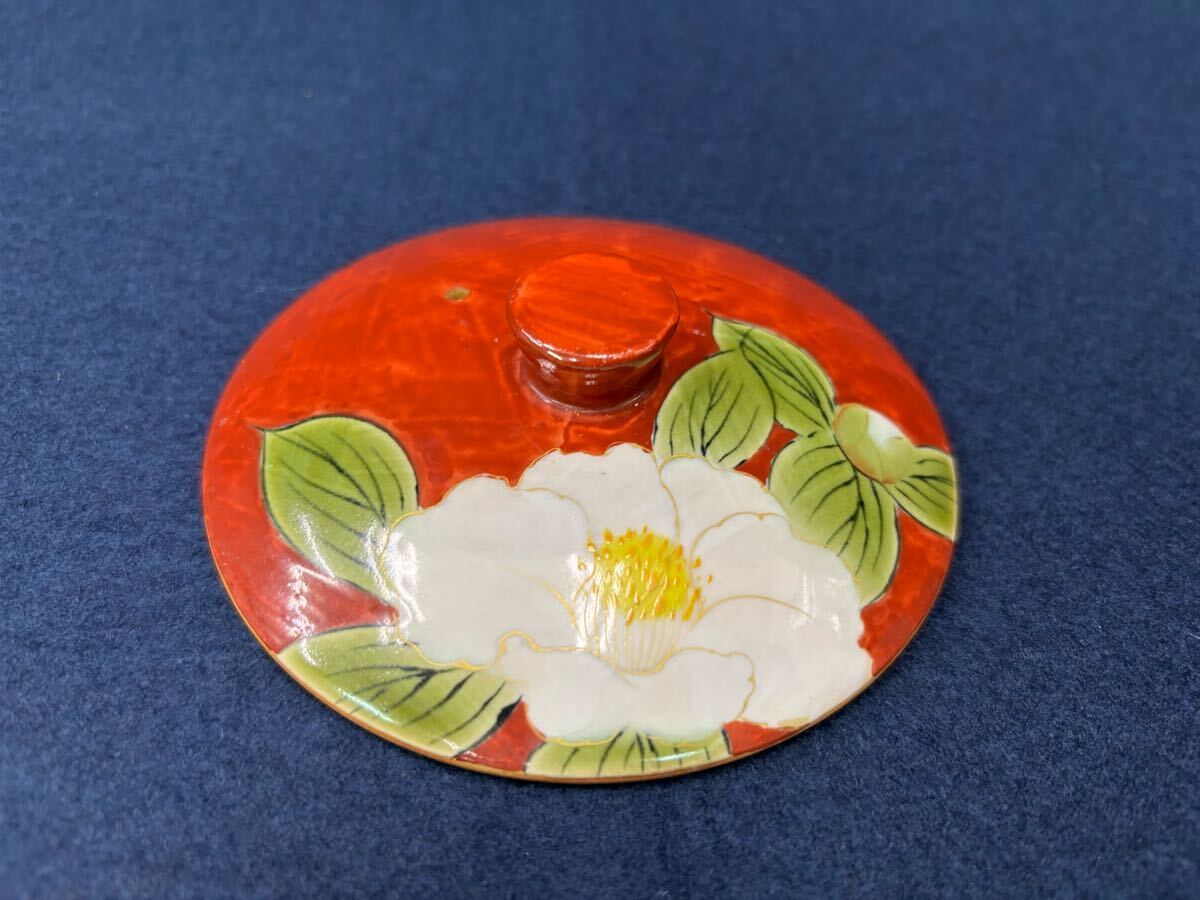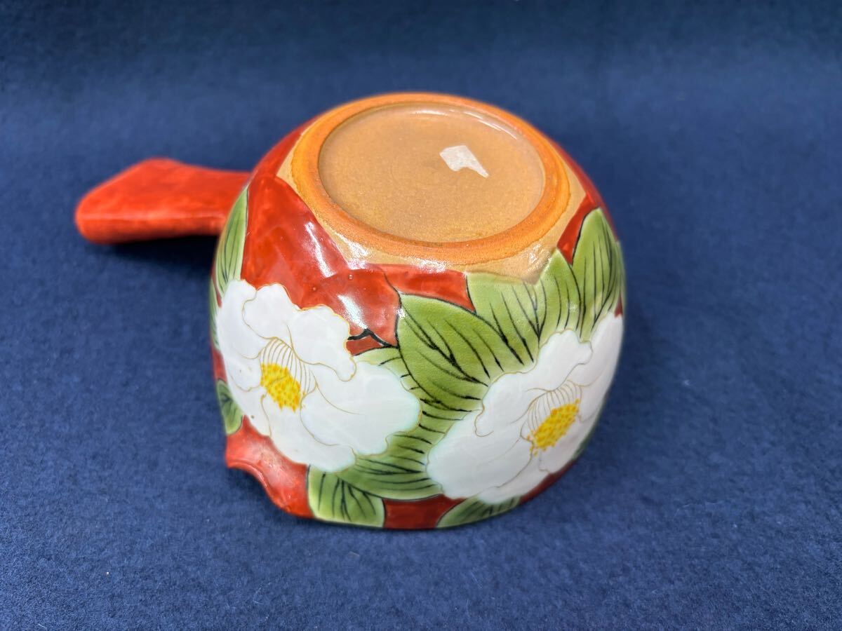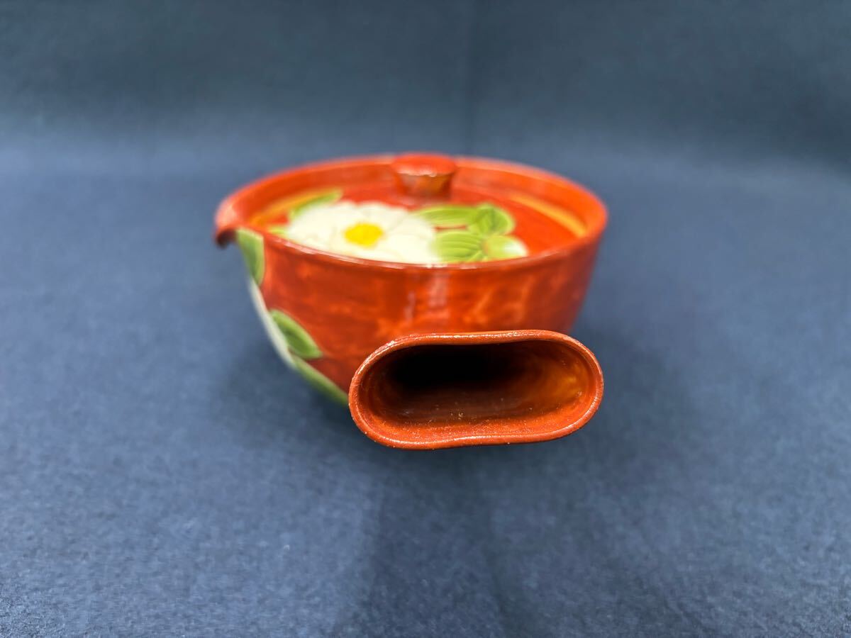 r7110112 京焼 清水焼 陶あん 作 赤地白椿 横手急須 煎茶道具 在銘