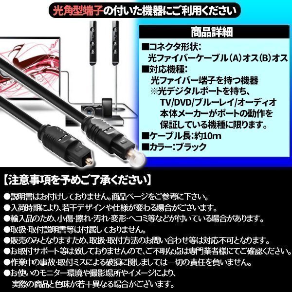 ★光デジタルケーブル 10m 光ケーブル 光角プラグ 光角プラグ 10m 光通信 ケーブル 高音質 デジタル 光 光角プラグ