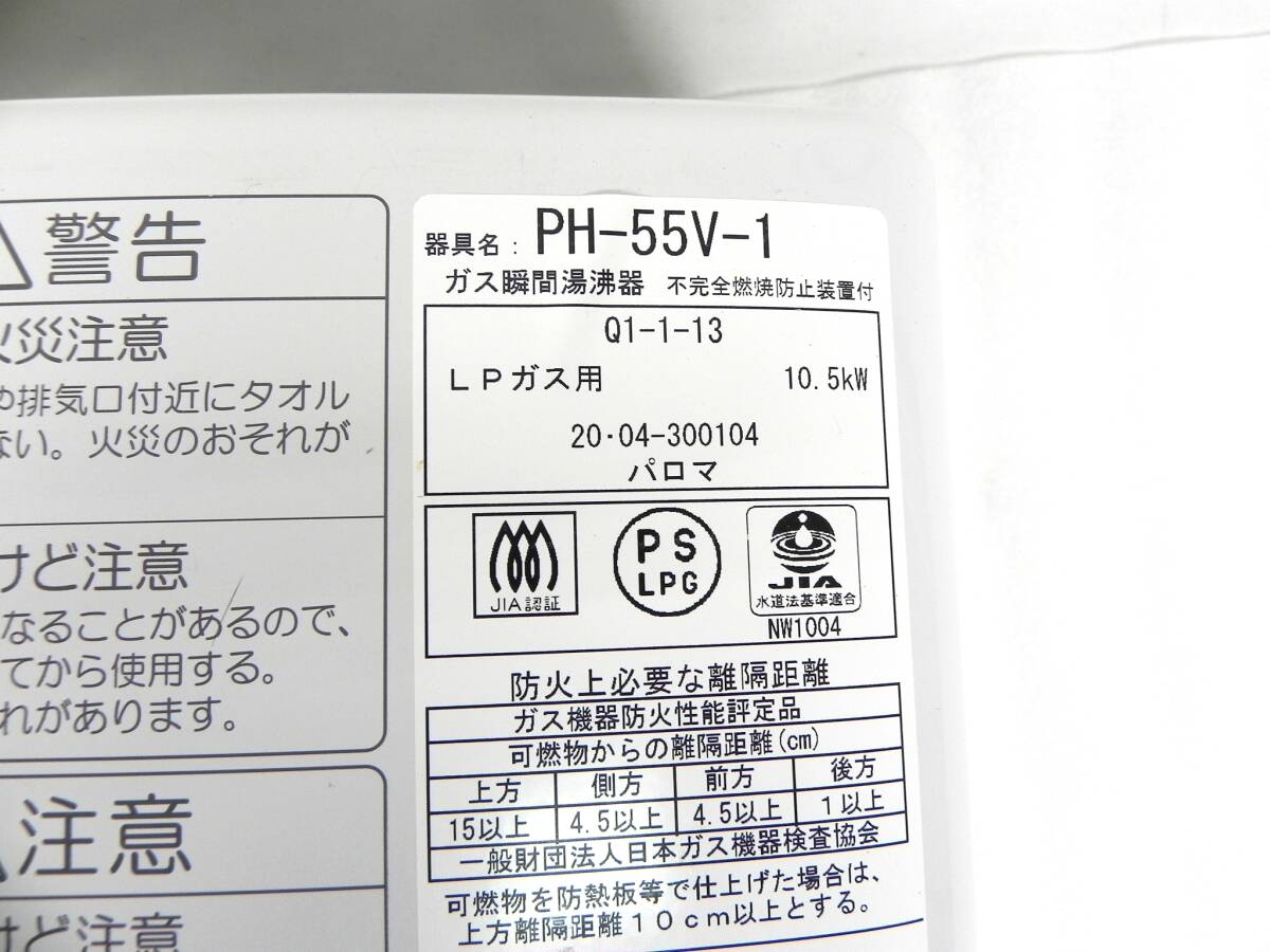 [R5137]Paloma パロマ ガス瞬間湯沸器 LPガス用 PH-55V-1 取説付