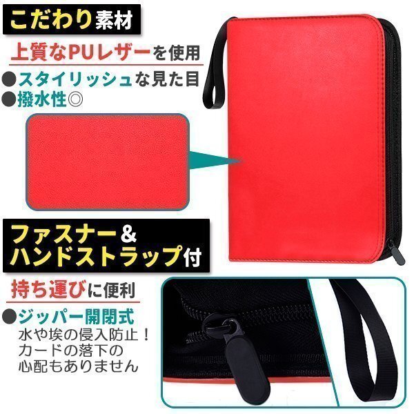 カードファイル トレカケース トレーディングカード 4ポケット 400枚収納 レッド 赤 カードバインダー トレカ カードケース カード収納
