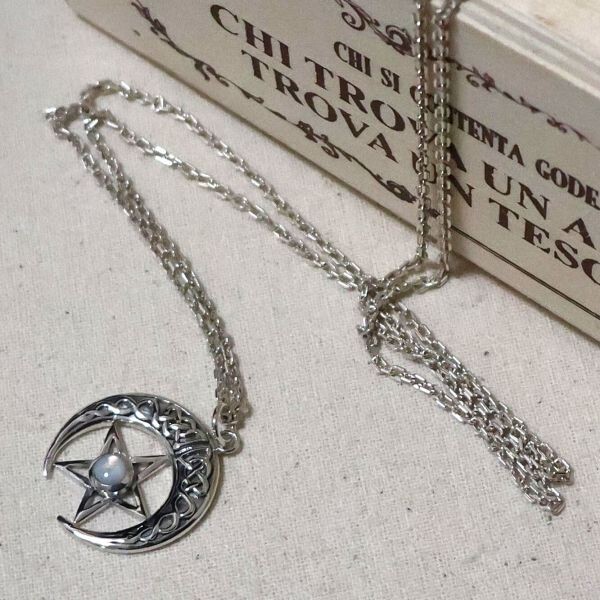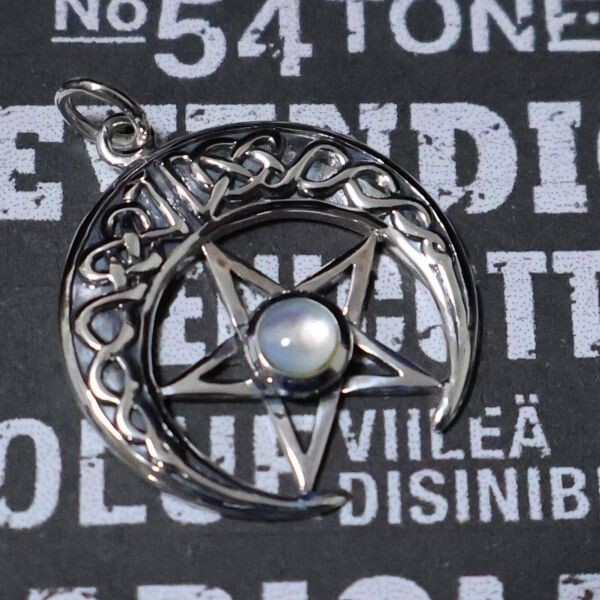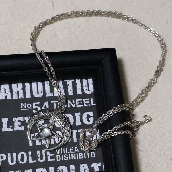 夜空に輝く月と、強力な魔除けの力を持つとされる五芒星(ペンタグラム)を組み合わせた、シルバー925製の神秘的なペンダント ネックレスです。中央に優しく光る淡水パールが、さらに神秘的な雰囲気を高めています。 月は、女性性、感受性、そして成長の象徴であり、五芒星は、五つの元素の調和を表し、身を守る力、願いを叶える力を持つと言われています。この二つの強力なモチーフが組み合わさることで、持ち主の直感力を高め、ネガティブなエネルギーから守り、願い事を成就するサポートをしてくれるかもしれません。 【商品の特徴】 素材:高品質 シルバー925、淡水パール モチーフ:月(クレセントムーン)、五芒星(ペンタグラム)、ケルト模様 幸運の意味:魔除け、願いの成就、直感力向上、保護、成長、永遠の繋がり 神秘的で複雑なデザイン 月と五芒星、ケルト模様の強力な組み合わせ 中央に輝く上品な淡水パール お手持ちのチェーンを通してネックレスとしてお使いいただけます。 神秘的なもの、古代の文化、スピリチュアルなものが好きな方におすすめです。 この神秘的なペンダントが、あなたの内なる力を呼び覚まし、そっと見守り、幸運へと導くお守りとなることを願っています。 プロフィールの確認お願いします。 ノーブランド商品なのでブランド品の様に高額ではなく、シルバーの価値に見合った価格で販売させて頂いています^^ ★商品詳細★ ・商品:ペンダントトップ(TOP) ・商品番号:SH0853na ・材質:シルバー925 ・重量:約3g ・サイズ:約27.8mm×20.8mm ※バチカンを含んだ全体の長さ ・バチカン内径 約3.5mm×3.9mm チェーンは落札後、取引連絡にて1.6mmのSV925チェーン、女性用45cmm・中間50cm・男性用55cmから1本お選びください。 ★購入時の保障について★ お送りした商品が商品詳細記載と違いがあれば、全額返品返金にてさせて頂きます。 万一郵送時にトラブルがあった場合にも、責任をもって対応させて頂きます。 ご安心して購入ください。