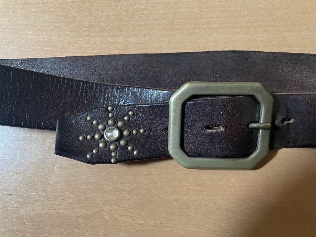 色はブラウンでスタッズはブラスでストーンはクリアです。