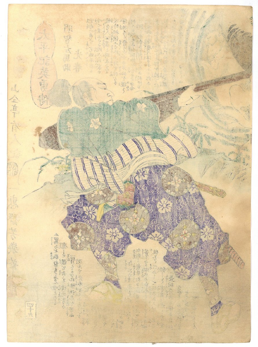 中判錦絵・裏打なし・とじ穴・補修・オレ・スレ・汚れ・しわ・最後二枚の画像は参考画像です、出品は一枚です・経年による時代感あり