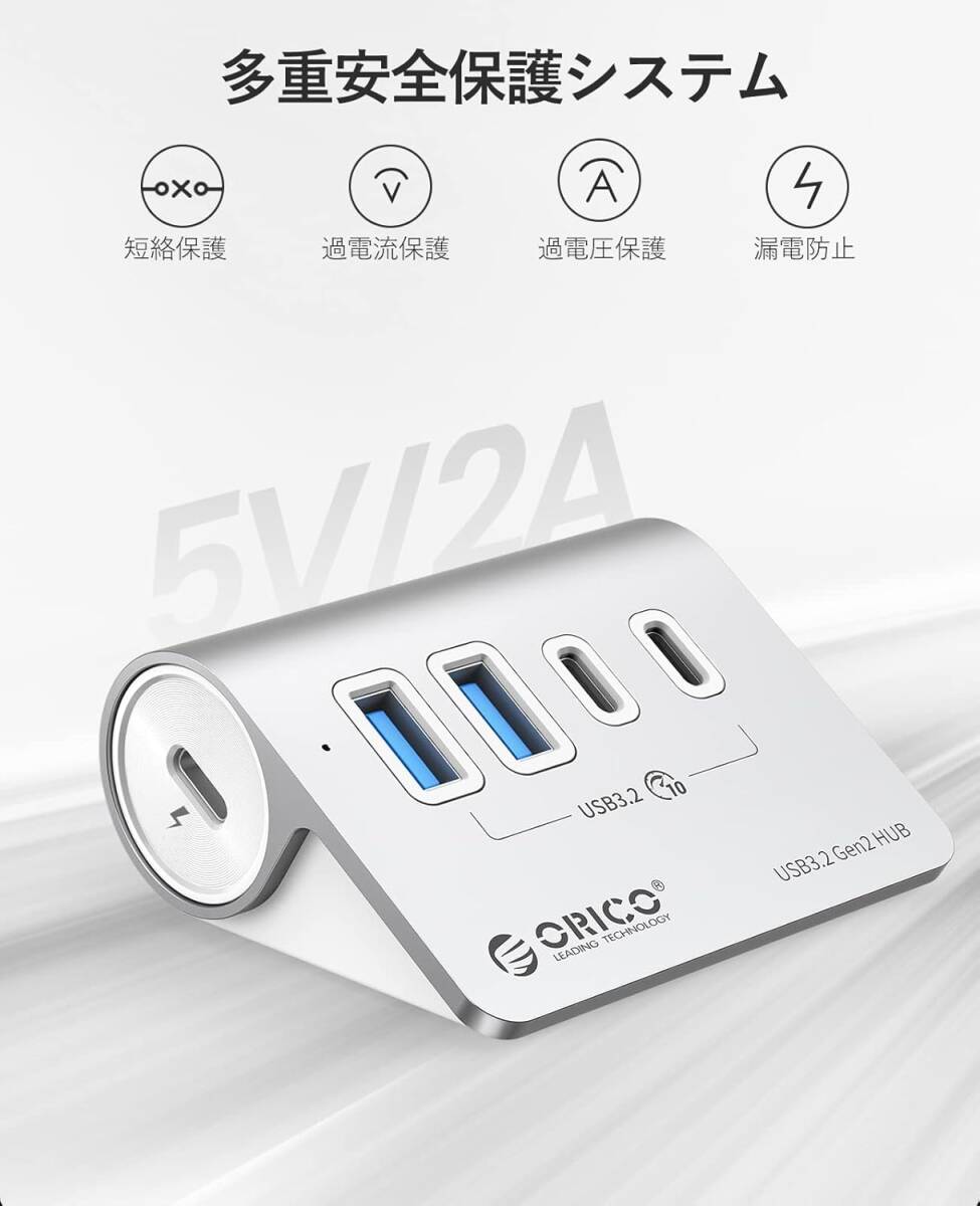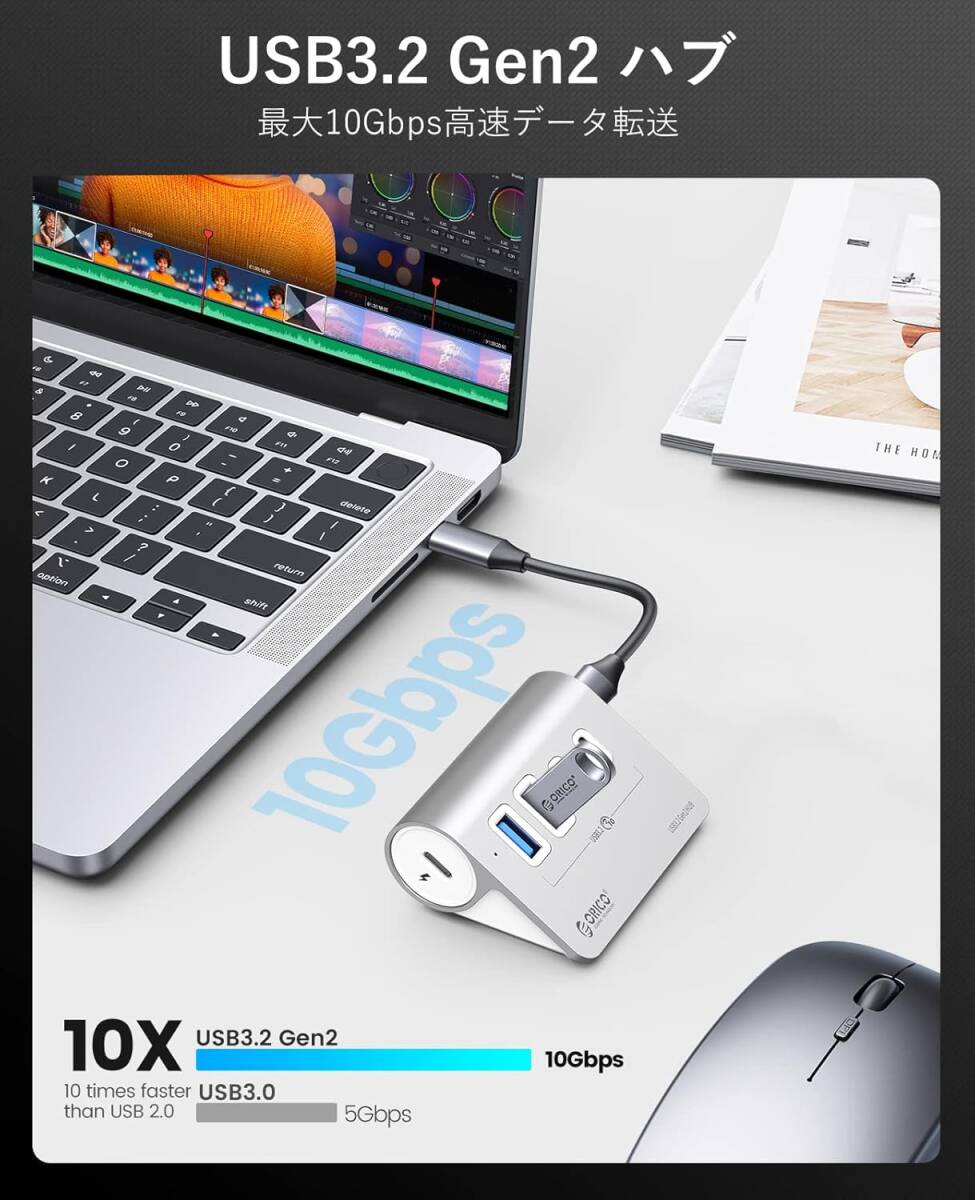 【訳アリ】ORICO USB ハブ USB3.0 4ポート 10Gbps高速転送 セルフパワー/バスパワー両対応 変換アダプタ付き USB C/USB Aデバイス両対応