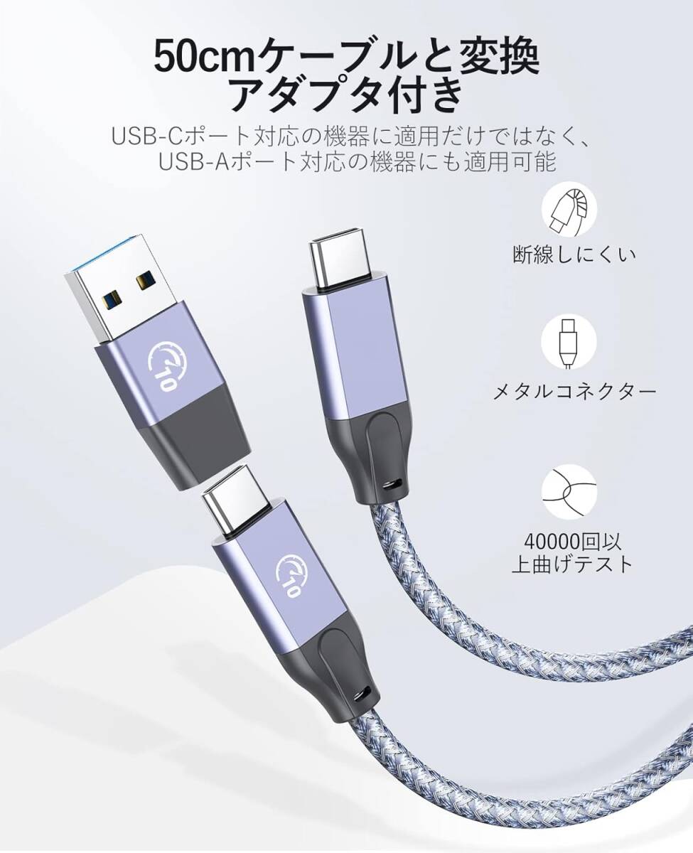 50cmケーブルと変換アダプタが付いて、PCコネクタ形状にとらわれなくて、ハブとノートパソコンのUSB-AポートまたはType-Cポートの接続が可能です。
