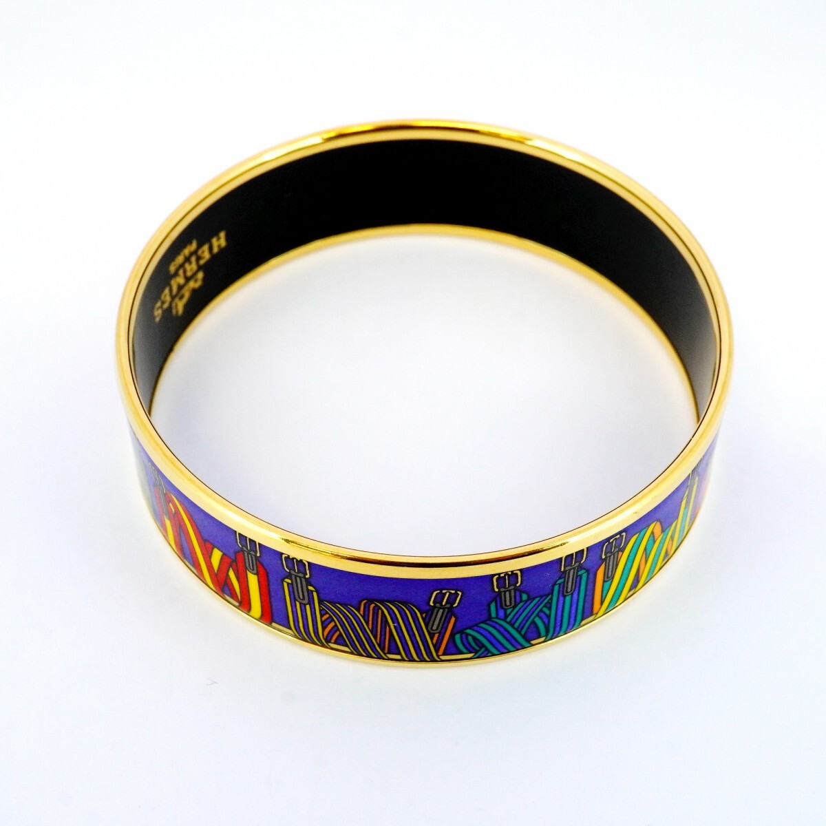 【5jmb0597】エルメス バングル エマイユGM GPメッキ 七宝焼き ゴールド ブルー マルチカラー【中古】レディース