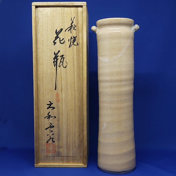 DKG★送料無料★ 未使用 萩焼 窯元 大和雲谷 窯 耳付き 花瓶 箱付き 花器 華道具 花びん 花入 インテリア 置物 フラワーベース 耳付き花瓶