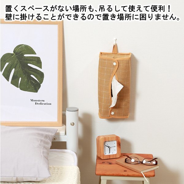 ティッシュケース 収納 カバー 縦型 チェック柄 車内 インテリア 壁掛け おしゃれ プレゼント 景品 新生活 送料無料 100K◇ KUKKA:ベージュ