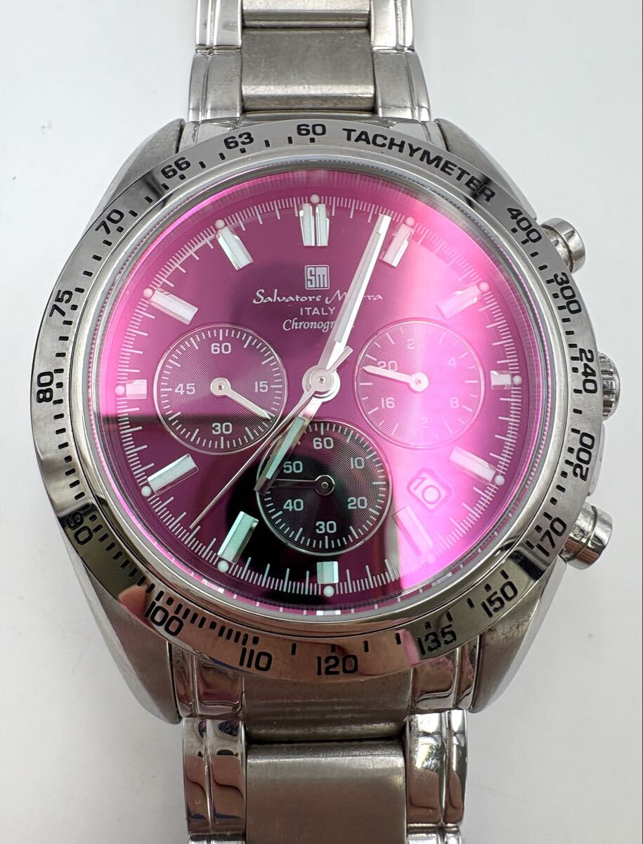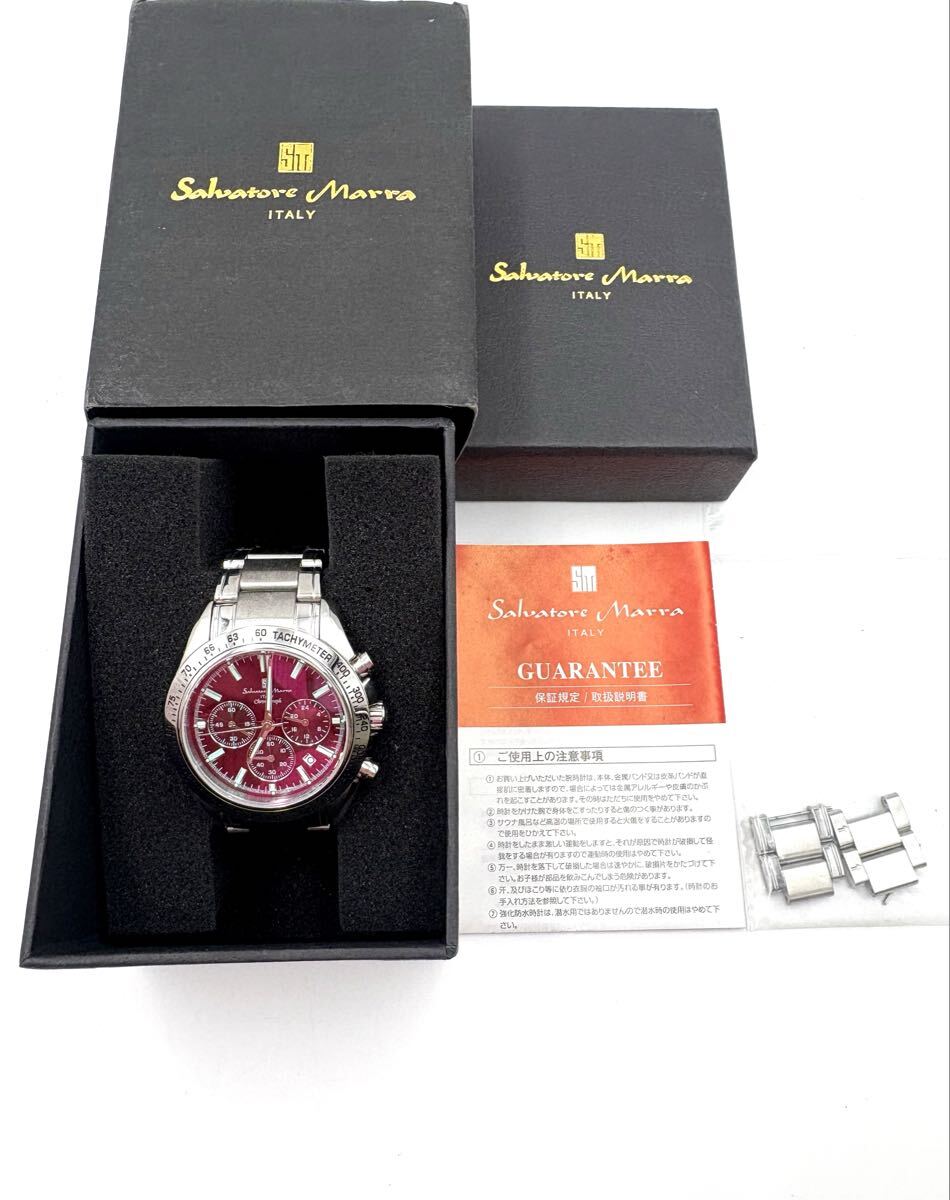 商品名 : Salvatore Marra サルバトーレマーラ SM18106-6 カラーガラス クロノグラフ クォーツ 腕時計 箱、余りコマ付き