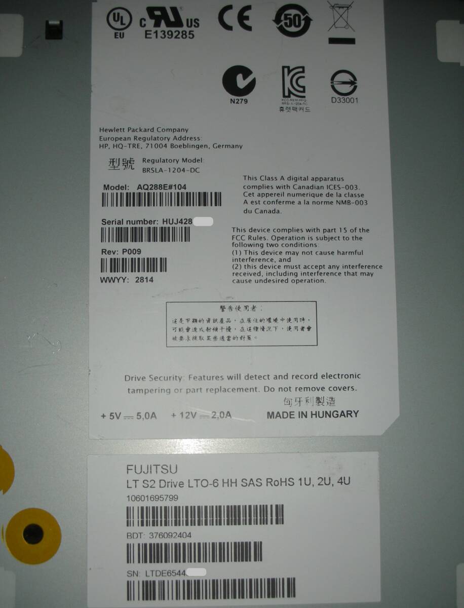 ●商品名:hp Loader Drive LTO6 HH SAS [AQ288E#104]×2台セット!です(#J4-216)。 ●写真の通りの商品です。 ●検証環境が無い為、2台共にRead/Write Testは未確認です。 ●FUJITSU LT S2 Auto Loader仕様のStickerあり。 ●ジャンク扱いでの出品とさせて頂きます。 ●パーツ用などに如何でしょうか? ●SAS Cable等、付属品は一切ありません。 ●写真をご参照の上、ご入札のほど、宜しくお願いします。 ●送料は下記の「100サイズ」となります。 ●運輸業者は当方で決めさせていただきます。 ●上記の発送サイズは2ヶセットの場合です。複数同時発送の場合の送料はこちらからご連絡いたします。 ●中古のダンボールを使用する事より実際の発送サイズが異なる場合がございます。ご了承下さいませ。 ●東京都江戸川区西一之江の倉庫にてのお渡しも可能です。 ●その場合は、無梱包お渡しとなります。 ●営業時間は月曜日~金曜日、AM10:00~PM18:00となります。 ●第1.3.5土曜日のみ、11:00~15:00に限り、営業致します。 ●第2.4土曜日・日曜日・祝日は休みになります。 ●こちらからのご連絡は平日昼間のみとなります。 ●また、お取引後の評価ですが不要のお客様が多い為にこちらからは入れておりま せん。 ●評価が必要なお客様は取引メッセージにてのご連絡をお願い致します。