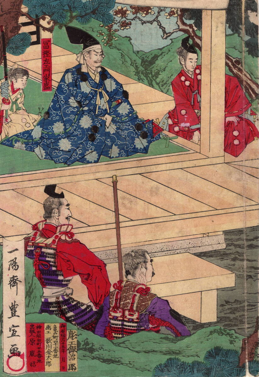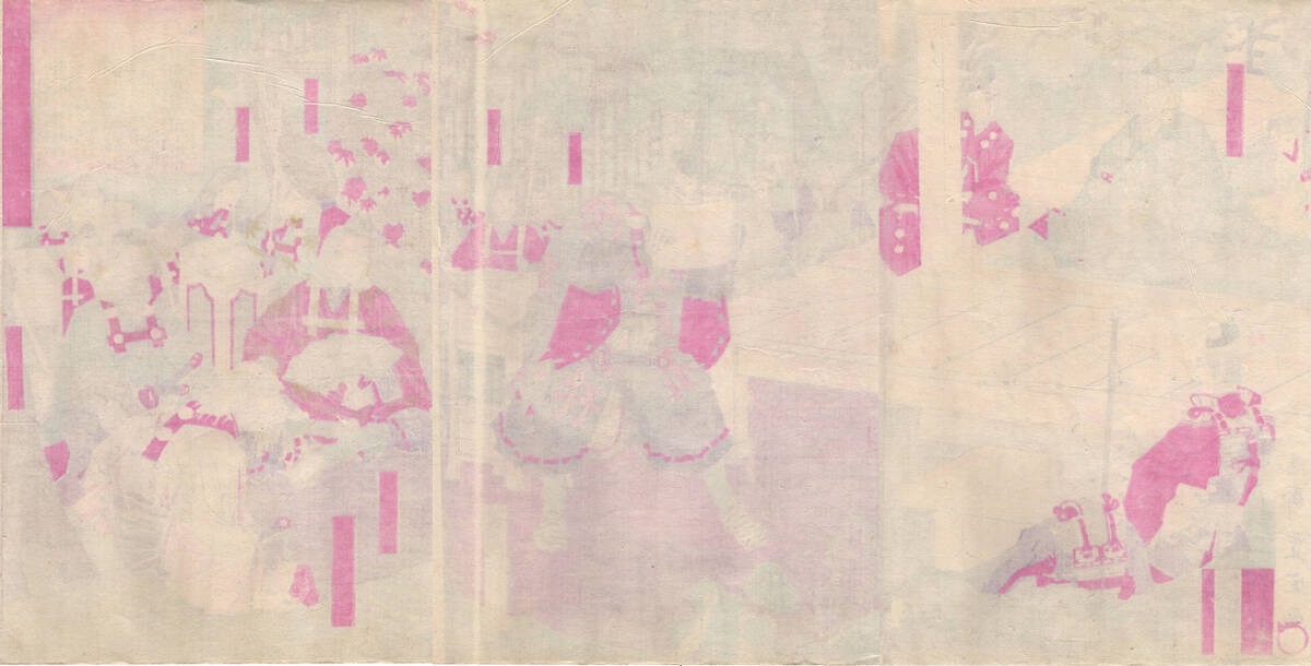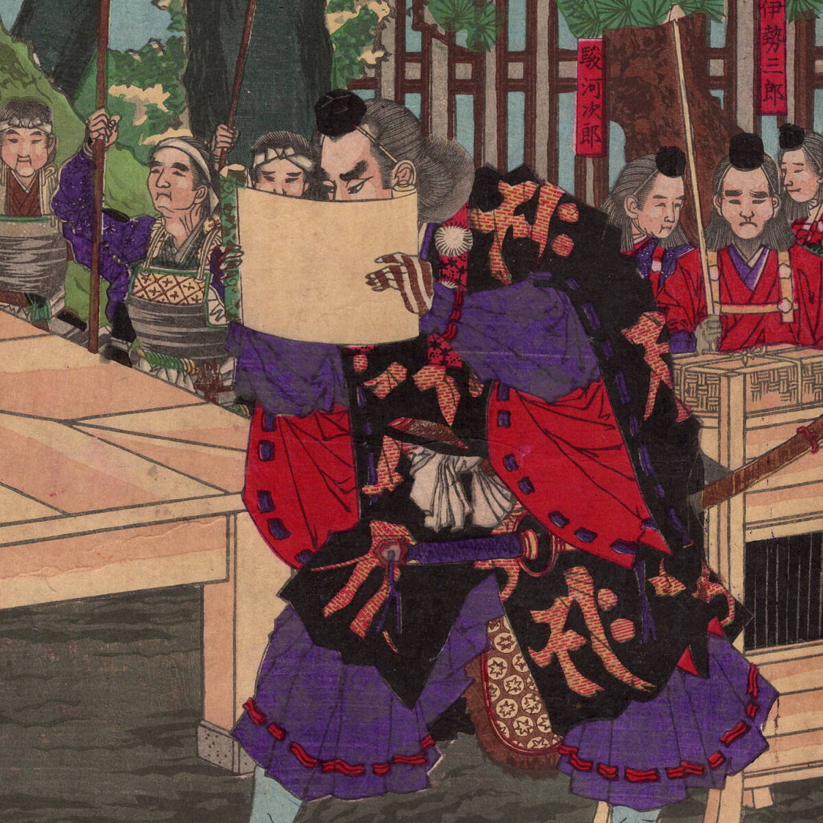 11-1 真作【浮世絵】歌川豊宣(一陽斎豊宣)加賀国安宅関勧進帳之図 三枚続 大判錦絵