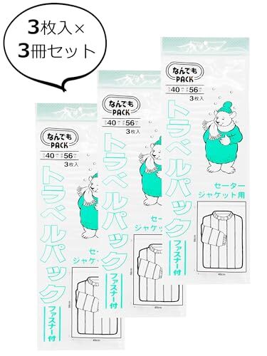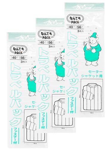 アルフォーインターナショナル 収納袋 なんでもパック トラベル セーター ジャケット用 透明 3枚入×3冊セット ファスナー付き 約横40×縦5
