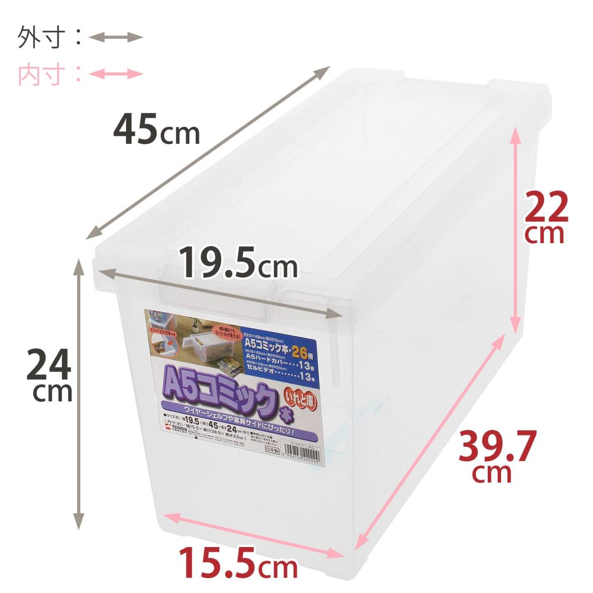 ・収納の目安:A5コミック本なら約26冊、A5ハードカバー本なら約13冊(1個あたり)