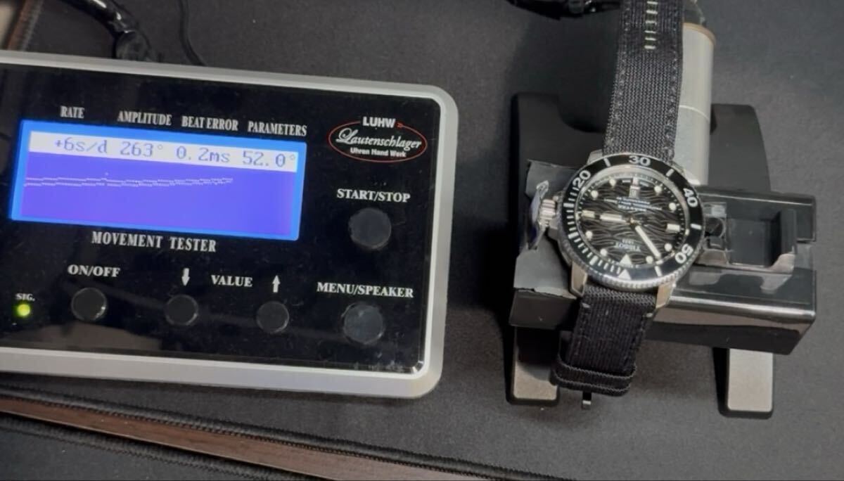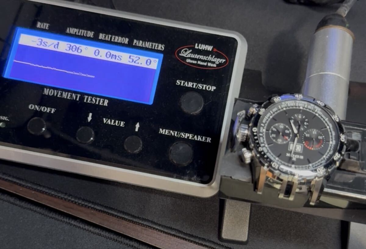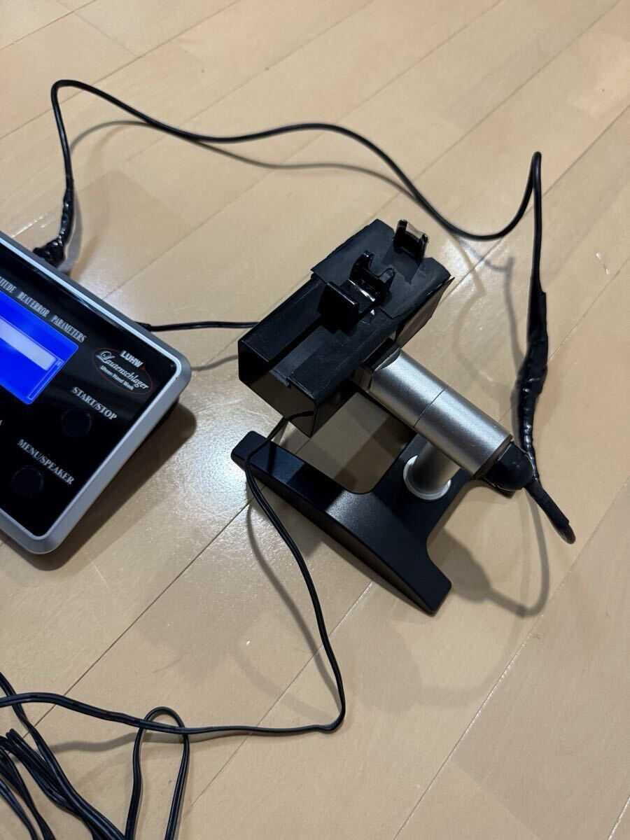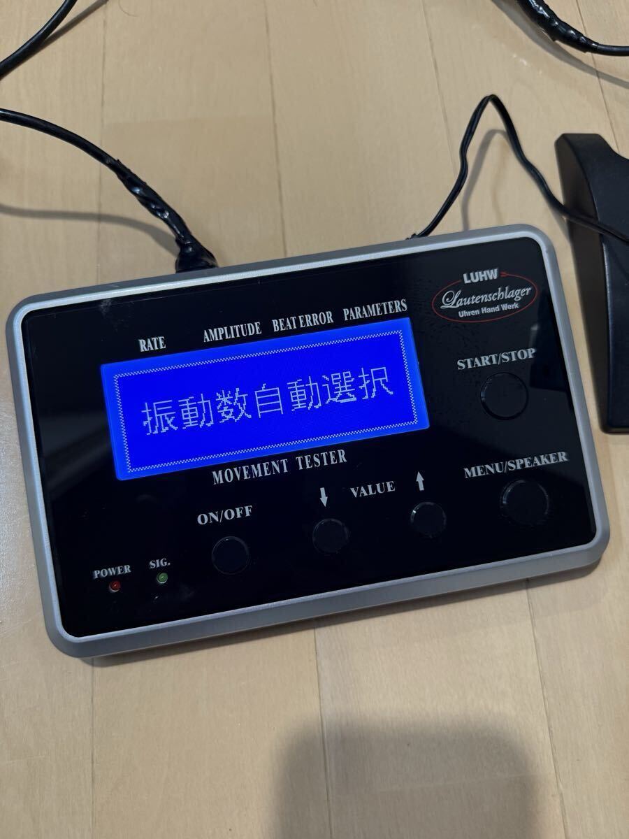 ローテンシュラガー 自動巻き時計測定器 タイムグラファー 中古品になります。写真の通り本体と測定器とアダプターの出品になります。写真の中の時計は付属致しません。時計を測定している参考写真となります。現状は稼動品で自動巻き、手巻き測定可能です。訳ありですが測定器のケーブルが修理してあります。特に使用には差し支え無い状態ですが気にされます方はご遠慮ください。また現状は動作確認済みなんですが精密機械及び訳あり品なので到着後も動作を保証することは出来かねます。あくまでも中古品なので修理をしたり出来る方は大丈夫かと思いますが新品の動作保証をお考えの方はご遠慮下さい。ノークレームノーリターンとさせて頂きます。