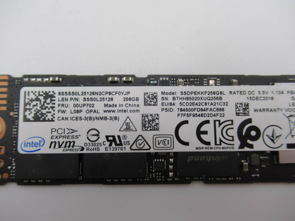 | ★商品説明★ | INTEL SSD M.2 2280 NVMe 256GB 1枚 中古 動作確認済みです。 写真は現物です。写真にもご確認の上ご入札下さい。 中古品ですので使用感が御座います。動作確認済みですが、相性は保証いたしません。 適用機種はよくご確認した上で、ご入札くださいませ。 |