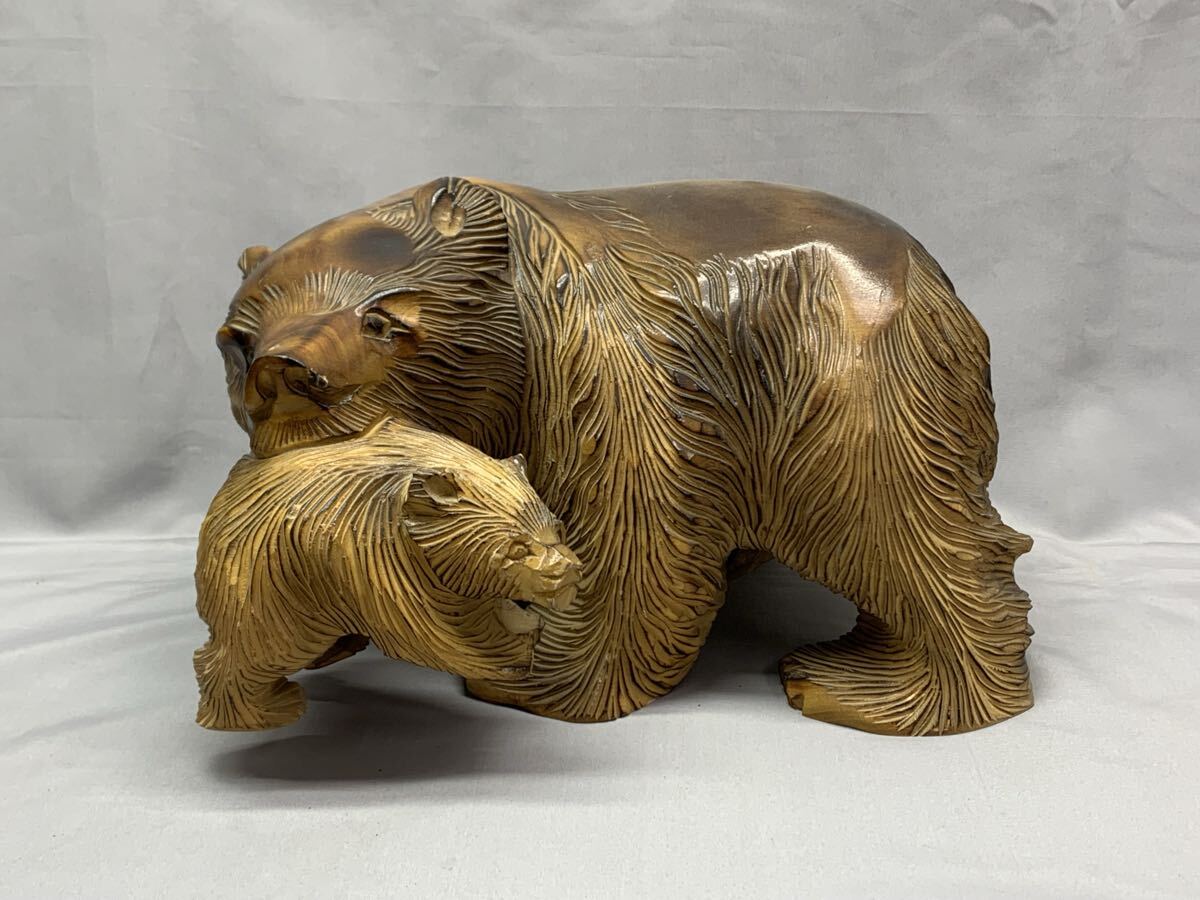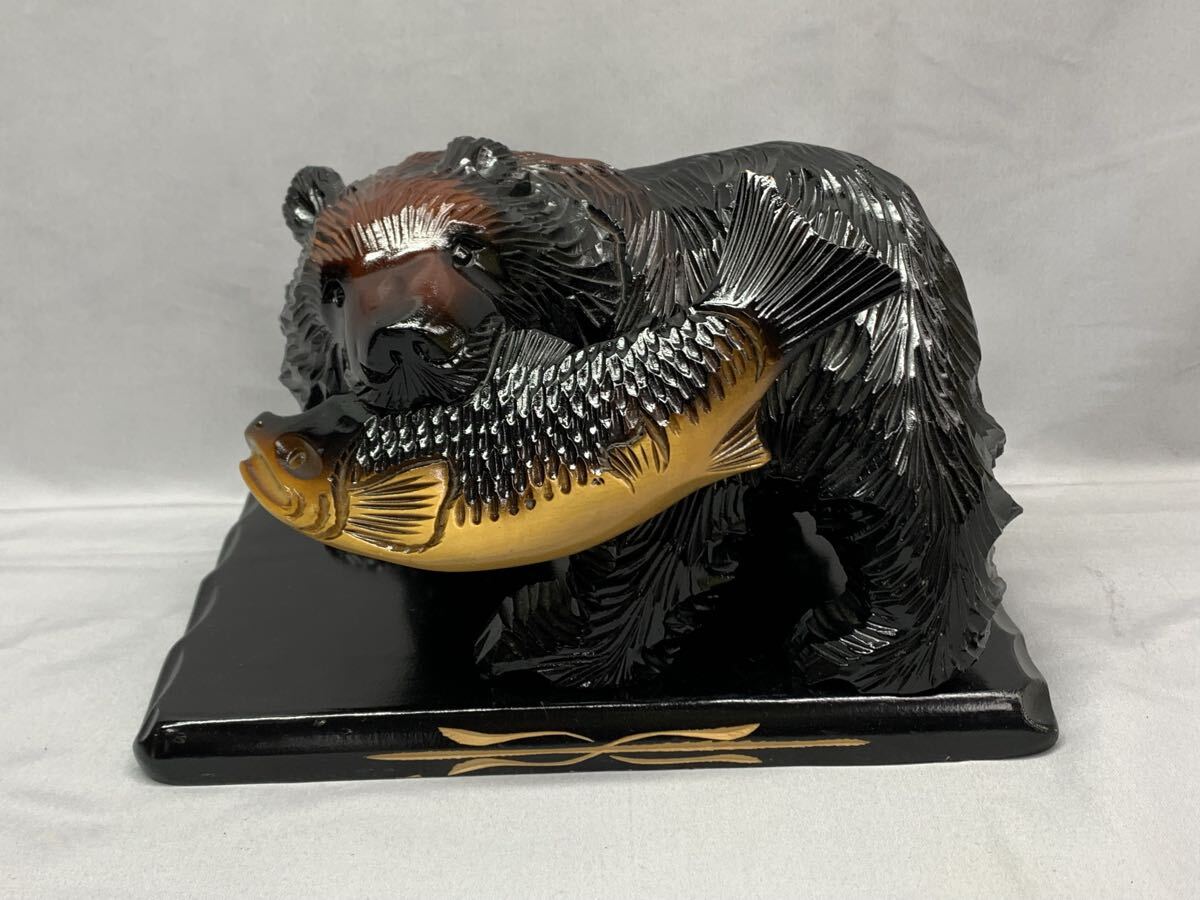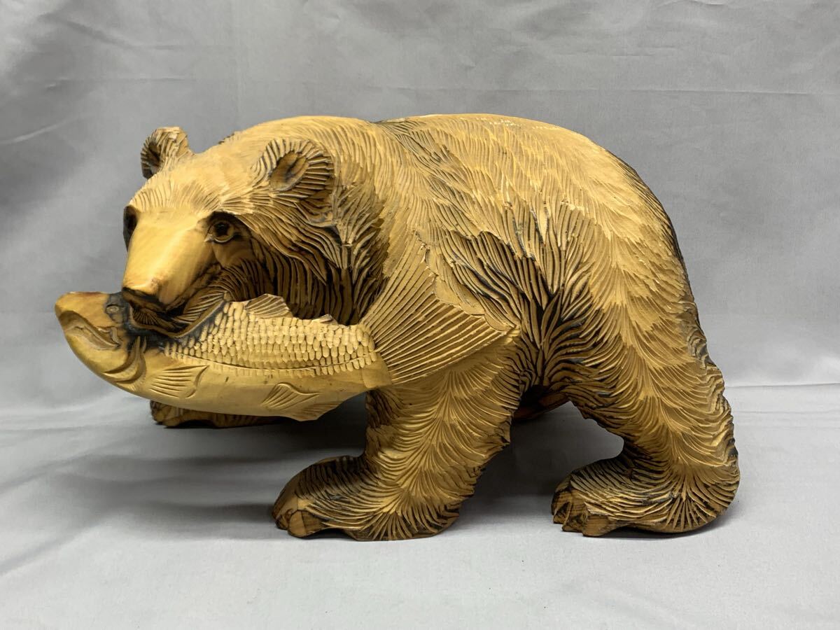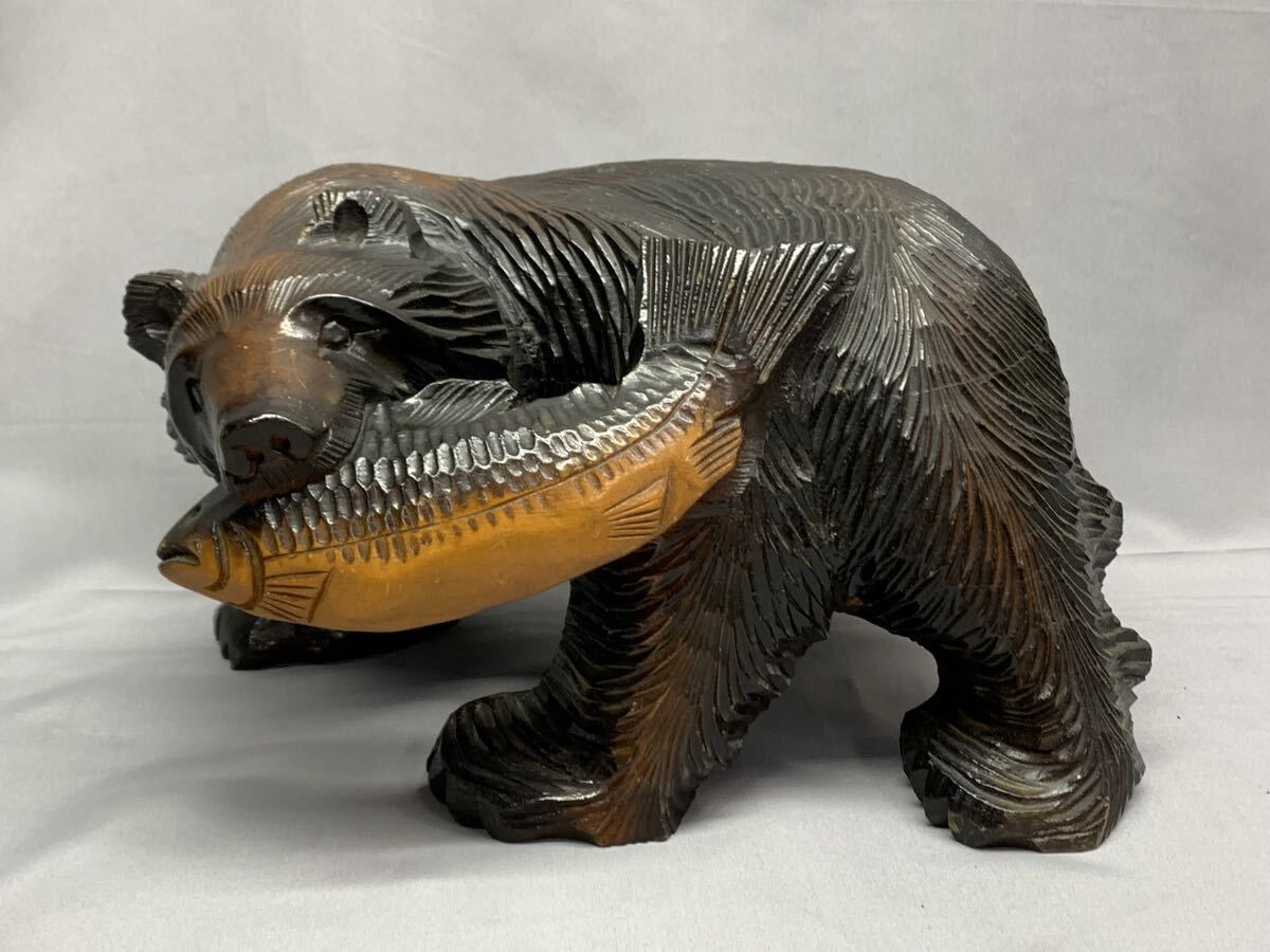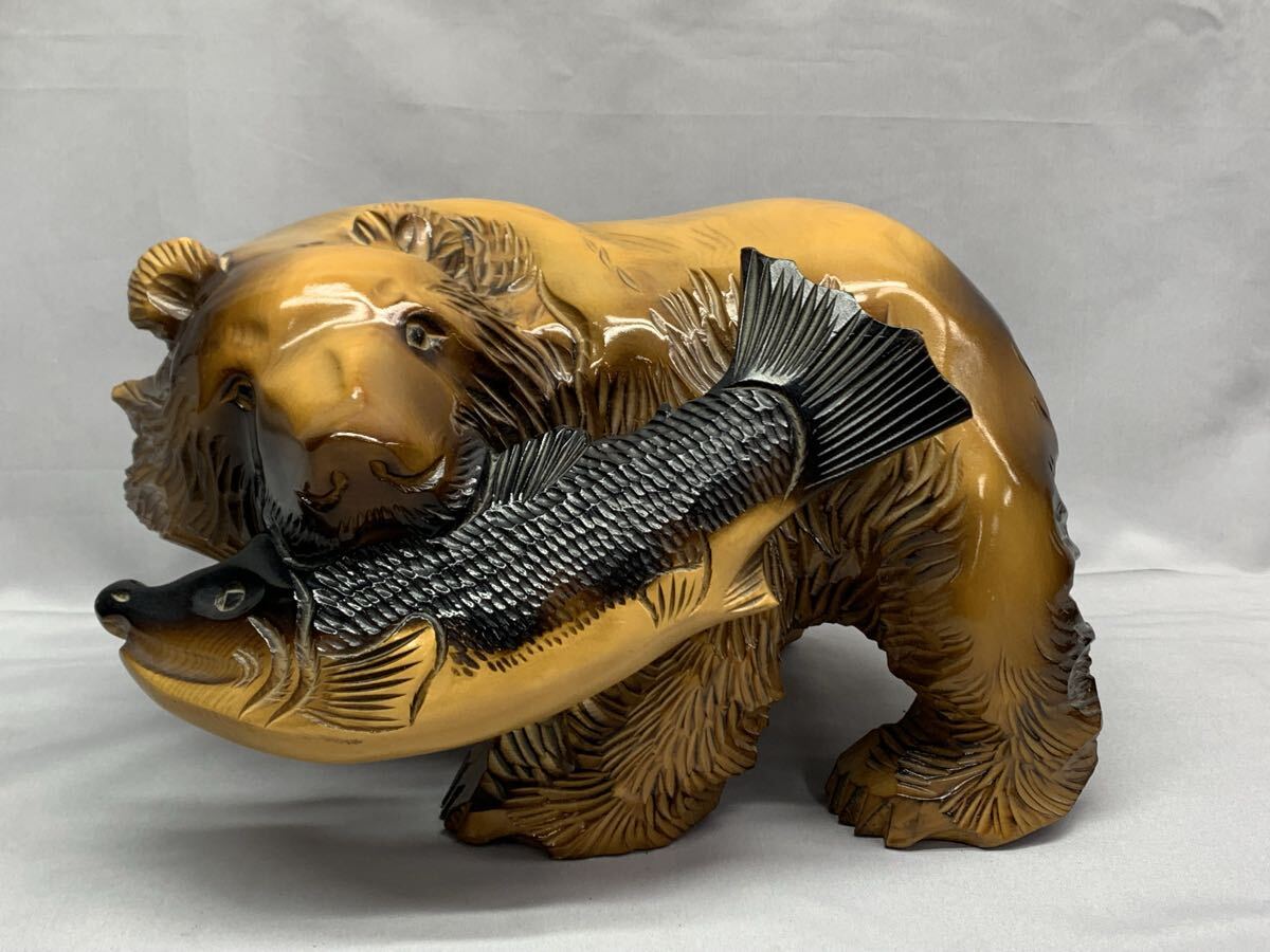 ・鮭咥え クマ 木彫 大きめ オブジェ 飾り物