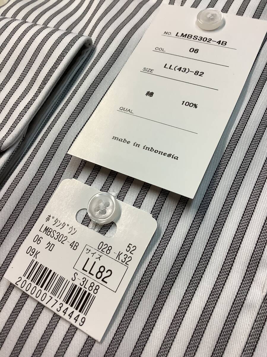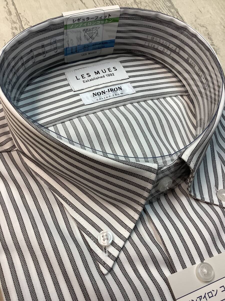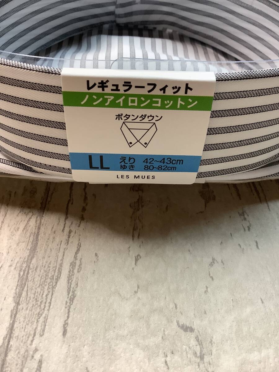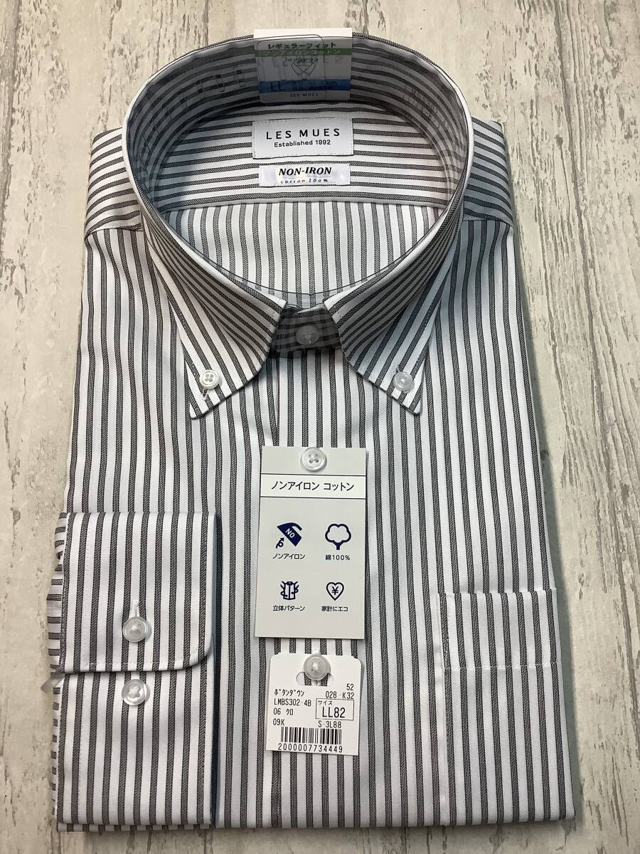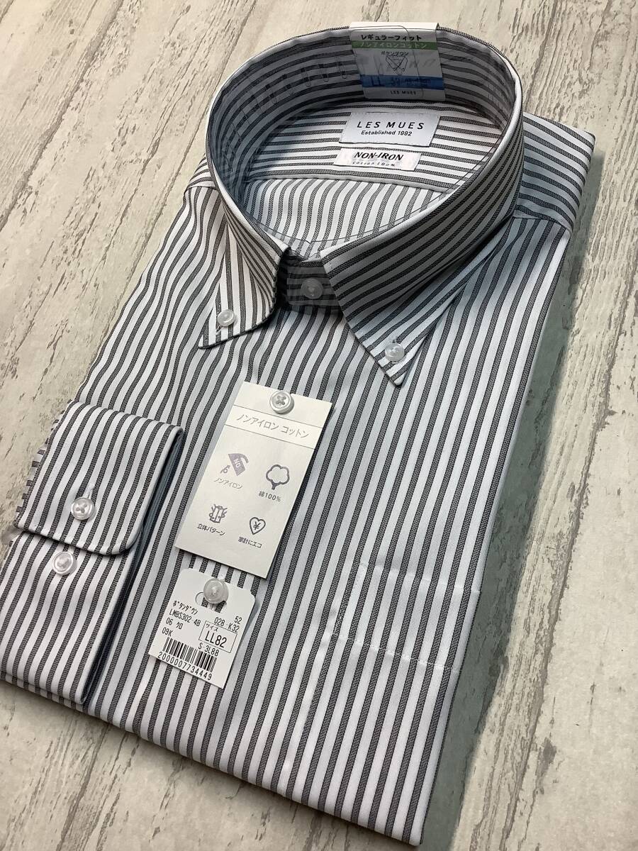 新品未使用 ★43-82 LLサイズ カッターシャツ 定価4,990円の品  ボタンダウン ★ノンアイロンコットン グレーチェック