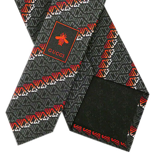 グッチ ブランド ネクタイ GUCCI 571808-1074 高級 シルク 100% グラデーション ロゴ ブラック グレー 黒 灰色 アウトレット