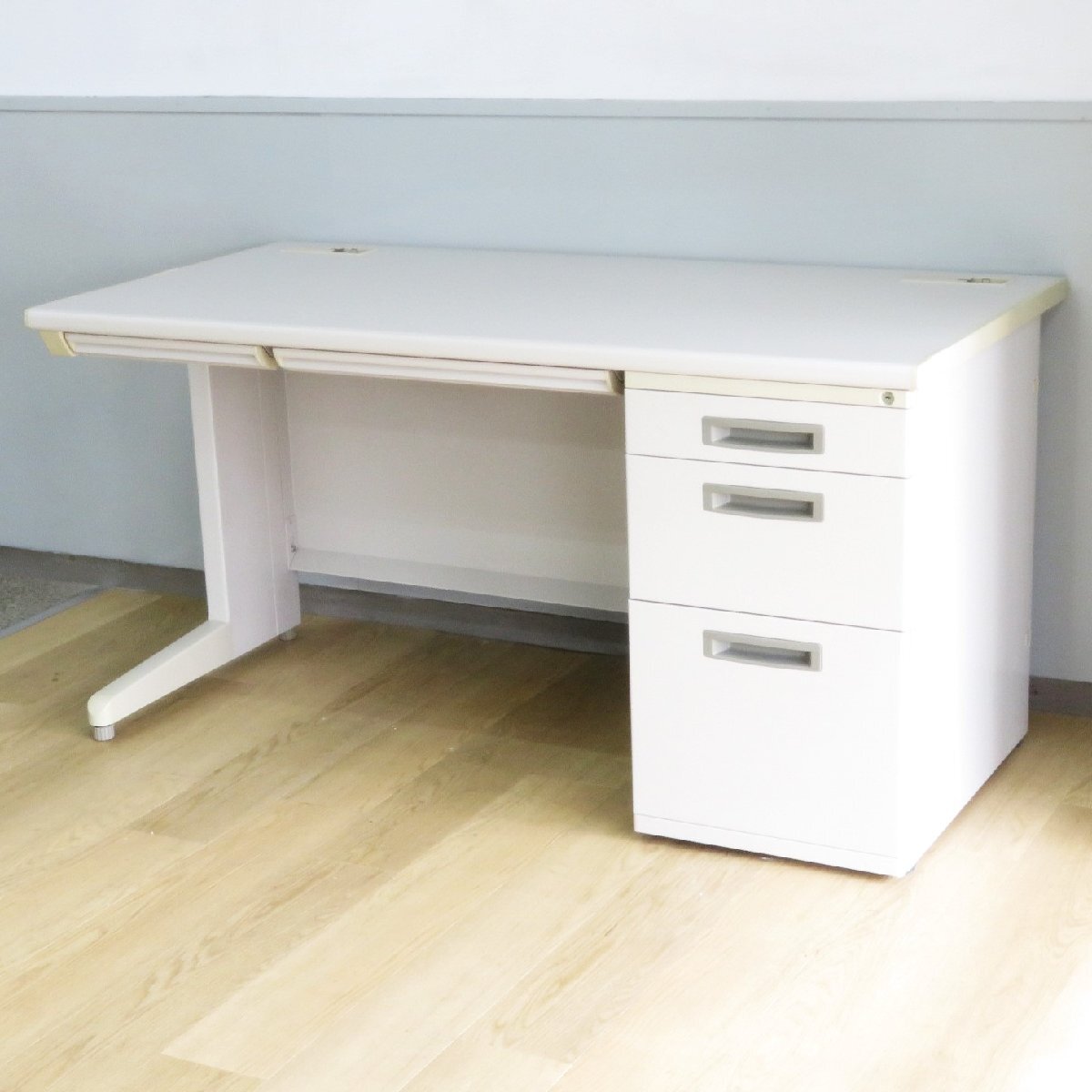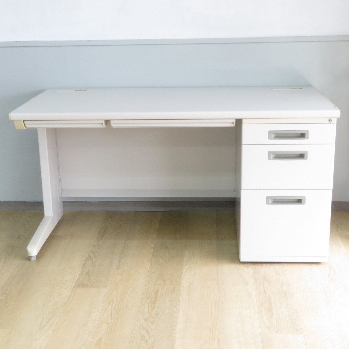 イナバの片袖デスクが入荷致しました。 ニューグレーカラーの配色で、オフィス空間にすっきり馴染むデザインです。 3段引き出しに天板下に浅型引き出しもついた収納力抜群のタイプ。 配線口付きなので、ごちゃつきやすいコード類も邪魔になりません。 机上をすっきりさせて快適なオフィスワークを実現するデスク。ぜひご活用ください! ※写真のお色味は光の加減でホワイトに見えますが、記載の通り実際はニューグレーであり、写真よりも暗いカラーとなります。 ※写真で掲載の商品そのものが届くとは限りません。複数入荷した中の1点を掲載している場合がございます。 |
