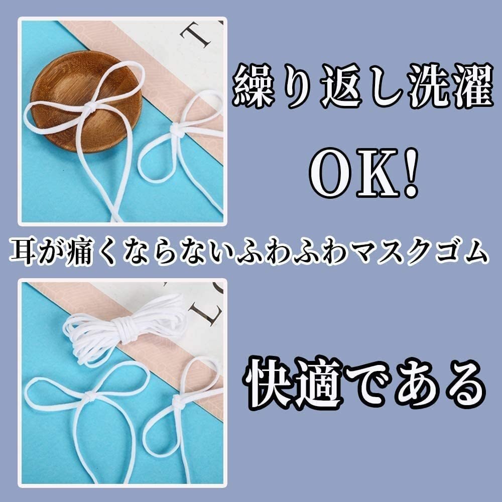 マスクゴム 4mm×100m 平ゴム 白 ソフト替えゴム ゴムひも 手作りマスク/手芸/ハンドメイド/洋裁 ホワイト
