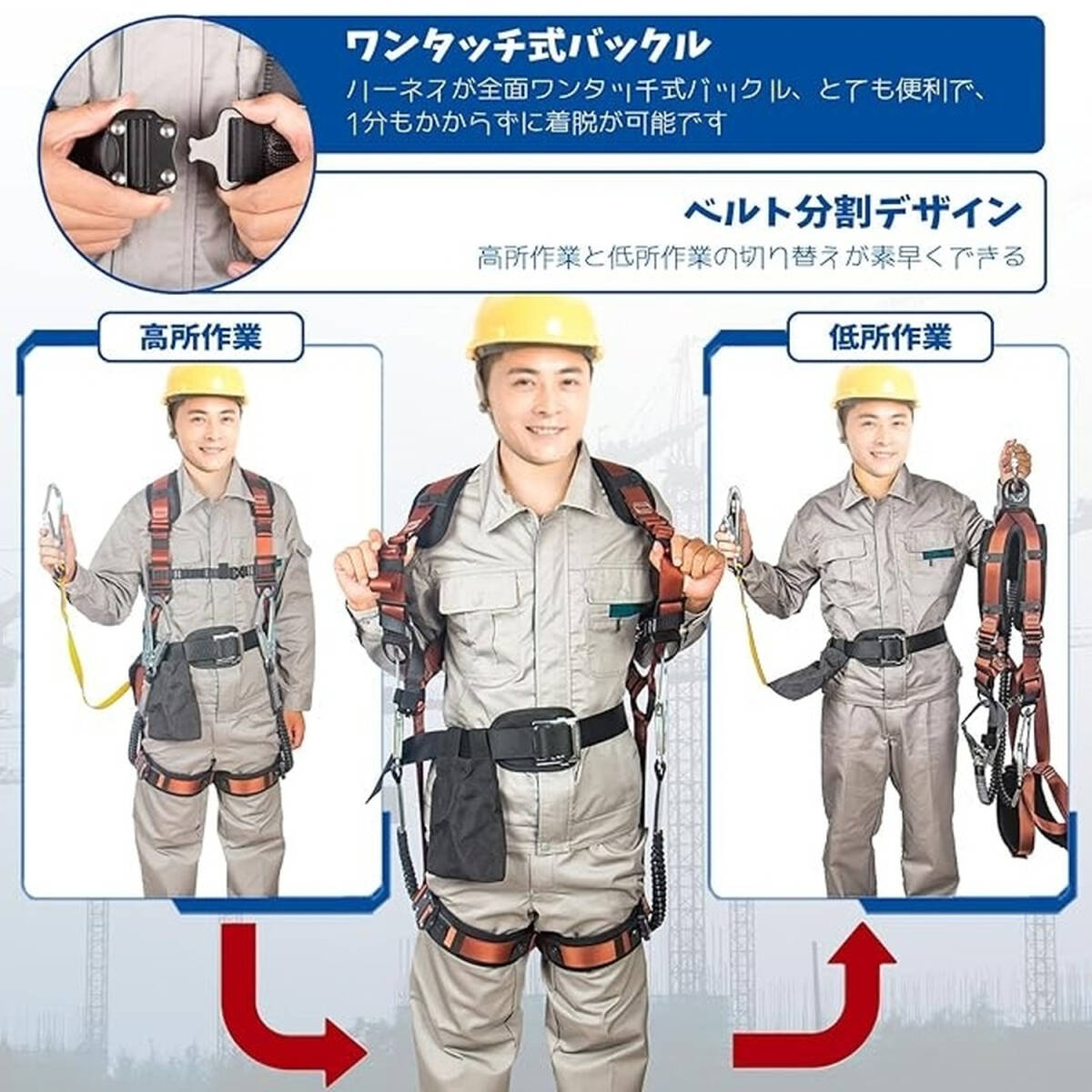 安全帯 フルハーネス 軽量アルミ-アルミニウム合金 新規格 軽量化 肩パッド付き ワンタッチ式バックル カンタンに着脱 高所作業