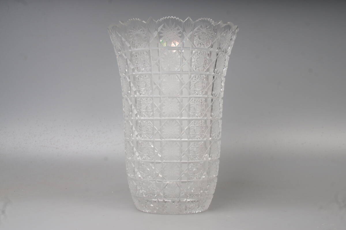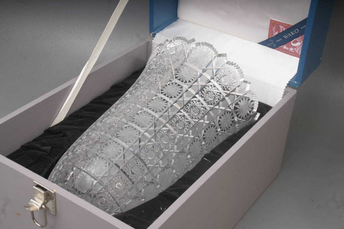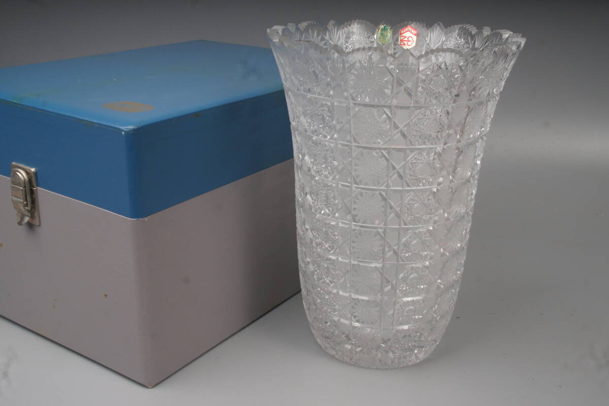 高さ約30.5㎝ BOHEMIA ボヘミア ハンドカットクリスタルガラス 大型フラワーベース チェコスロバキア 花瓶 未使用保管品