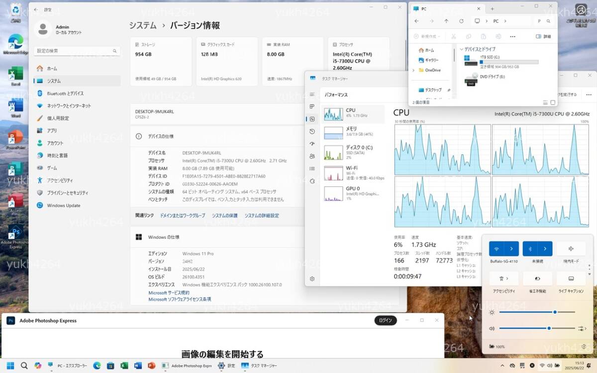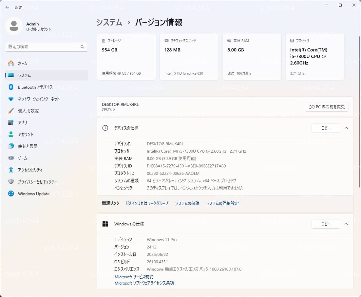 | 商品説明 | Panasonicより発売されているモバイルノートパソコン「Let's note SZ6 CF- SZ6Y28VS(Core i5-7300U/8GB/1TB(1,024GB)/CD/DVDドライブ読込対応/Win11 Pro 24H2 64bit/Sバッテリー/Microsoft Office) 」です。 最近のノートPCでは珍しくCD/DVDを読み込めるノートパソコンとなっているため、CDの取り込みやDVDの再生等が可能です。 型番: CF-SZ6Y28VS ※URL CPU: Intel Core i5-7300U 3.5GHz (Kaby lakeプラットフォーム) メモリ: 8GB (デュアルチャンネル) SSD: M.2 1TB(1,024GB) ※HDDより振動に強く、高速に動作するためOSの立ち上がりやソフトの起動が非常に高速です。 光学ドライブ: CD/DVD-ROMドライブ内蔵(読込専用) キーボード: 日本語配列キーボード 無線LAN/Wi-Fi: Wi-Fi 5対応無線LAN内蔵(2.4/5GHz帯対応) 有線LAN: Intel I219-LM(最大1Gbps) Bluetooth: Bluetooth v4.1 カードリーダー: SDXC対応カードスロット(UHS-II) OS: Windows 11 Pro 64bit 24H2 最新版 外部ポート: USB 3.0(5Gbps)×3ポート ディスプレイ出力: HDMI 1.4a×1ポート、D-Sub×1ポート バッテリー: 軽量なSバッテリー、4セル(CF-VZSU0MJS) 重量: 約940g ソフトウェア: Microsoft Office Online(Excel/Word/PowerPoint/One Note等)、Adobe Photoshop Express 到着からすぐにご利用いただけるように最新のWindows 11 Pro 64bit 24H2をインストール済みです。 【商品状態】 出品に伴い電源ON/OFF、バッテリーへの充電、バッテリーのみでの10分以上動作、Wi-Fiによるインターネット接続等簡単な動作確認を行っております。 最近のノートPCでは珍しくCD/DVDを読み込めるノートパソコンとなっているため、CDの取り込みやDVDの再生等が可能です。 到着からすぐにご利用いただけるように最新のWindows 11 Pro 64bit 24H2をインストール済みです。 【オプション】 ※一部のオプションについては全分解が必要な場合がございます。 ◇SSD ・M.2 2280 SSD 2TB(2,048GB) 追加: +65,000円 ・M.2 2280 SSD 4TB(4,096GB) 追加: +120,000円 ・SDXC 約128GB 追加:+8,640円 ・SDXC 約256GB 追加:+15,640円 ・SDXC 約512GB 追加:+45,000円 ・SDXC 約1TB 追加:+95,600円 ◇充電器 ※本製品はACアダプタは付属しておりません。必要な場合は取引ナビにてお申し付けください。 ・Panasonic ACアダプタ+ケーブルセット 追加: +5,500円 ・USB Power Delivery対応 約45W充電器 追加: +6,500円 ・USB Power Delivery対応 約65W充電器 追加: +8,500円 ・USB Type-C to Type-C PD 100W対応1mケーブル 追加: +2,300円 ◇外付けモニター ・約21.5インチ フルHD解像度(1920×1080) モニター: +22,000円 ・約24インチ フルHD解像度(1920×1080) モニター: +25,000円 ・約27インチ WQHD解像度(2560×1440) モニター: +45,000円 ・約27インチ 4K2K解像度 モニター: +55,000円 ・約31.5インチ 4K2K解像度 モニター: +65,000円 ※デュアルモニターでデスクトップを2つ表示する事で文字の見易さや作業効率が大幅に向上します ◇周辺機器 ※リカバリーUSBをご希望の際はお申し付けください ・Windows 11 Home/Pro両対応リカバリー用USBメモリ 追加: +5,500円 ・USB Type-C→USB PD対応Type-C充電ポート、USB3.0×2ポート、SDXCカードスロット、micro-SDカードスロット拡張ドック 追加: +4,500円 ・USB 3.0対応3TB外付けHDD 追加: +9,640円 ・USB 3.0対応4TB外付けHDD 追加: +14,640円 ・USB 3.0対応6TB外付けHDD 追加: +23,640円 ・USB 3.0対応8TB外付けHDD 追加: +28,640円 ・Quick Charge 3.0対応10,000mAh 日本製モバイルバッテリー 追加: 2,200円 ◇Microsoft Office ・Microsoft Office 2013 Home and Business ライセンス 追加(2023年4月迄サポート):+15,000円 ・Microsoft Office 2019 Home and Business ライセンス 追加(2025年10月迄サポート):+23,800円 必要な製品がございましたら取引ナビにてご連絡ください。商品と同梱、もしくは無料で別送にて対応させていただきます。 オプションのお支払いは銀行振り込みでの対応となります。 |