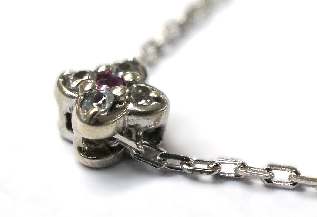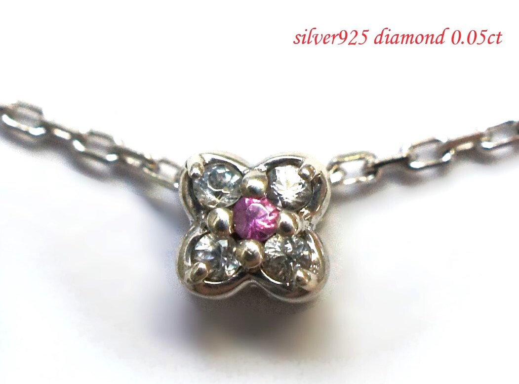 | シルバー925 ダイヤ 0.05ct ルビー フラワー型 ネックレス フリーチェーン【送料無料】 | |||