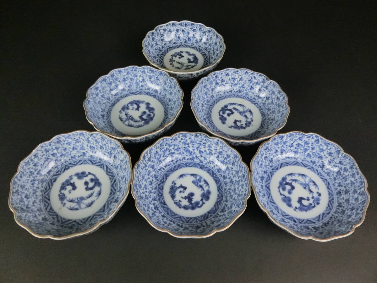 古伊万里 染付 唐草 盛期伊万里 深皿6客 本物保証品