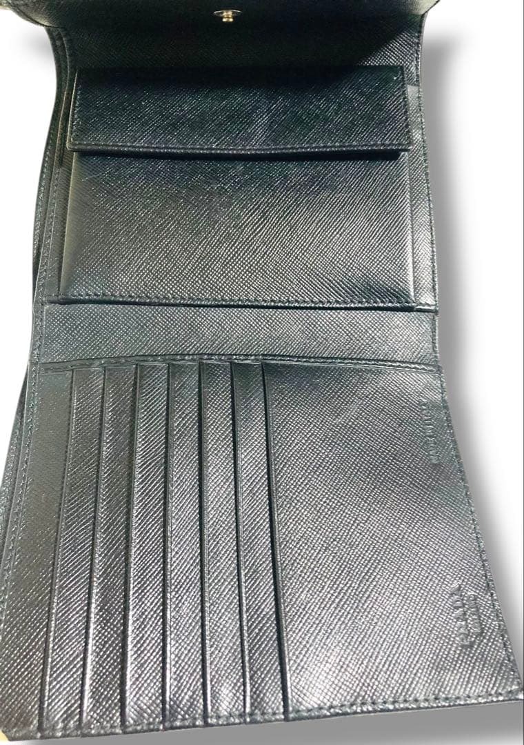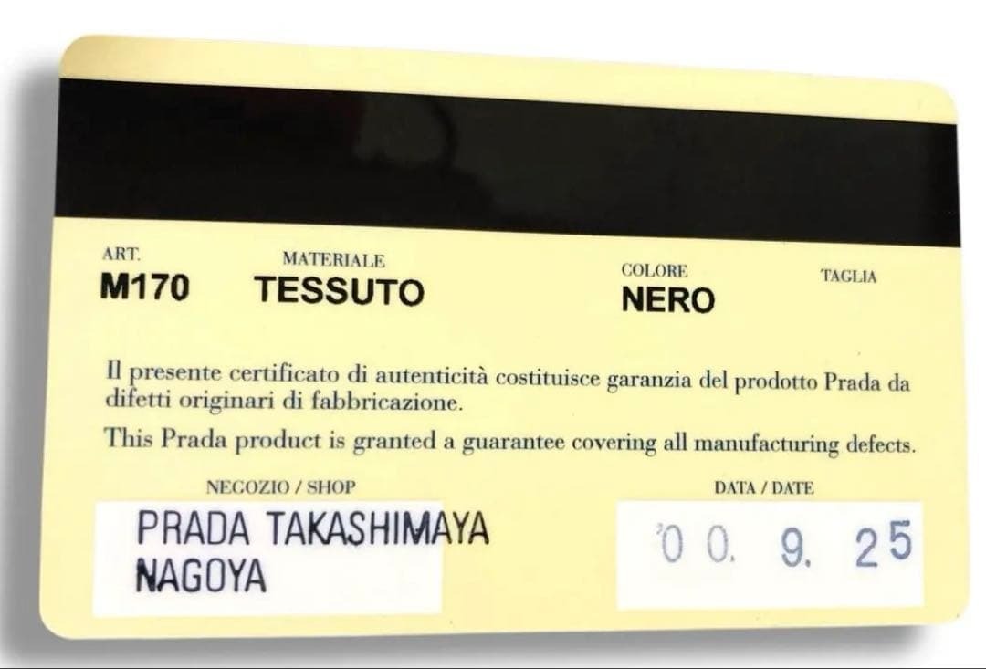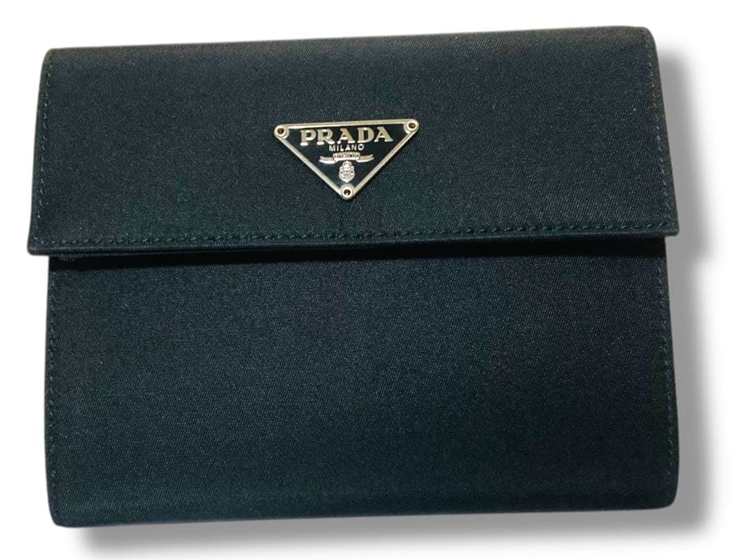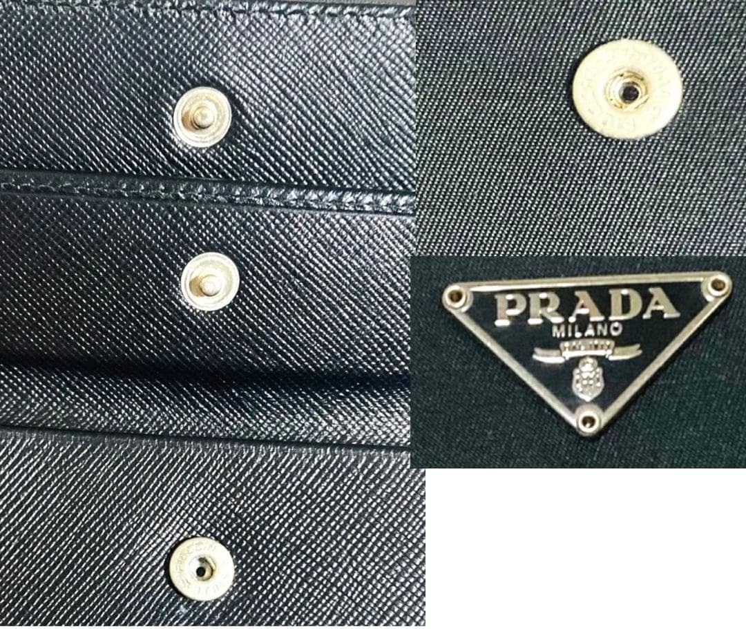 PRADA 美品 プラダ 3つ折り 財布 ユニセックス デザイン ナイロン ロゴ ギャランティ 三角 プレート ブラック 黒 メンズ レディース