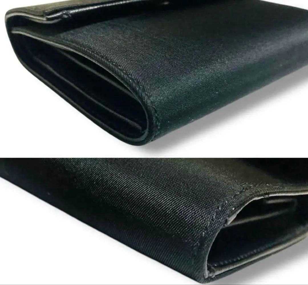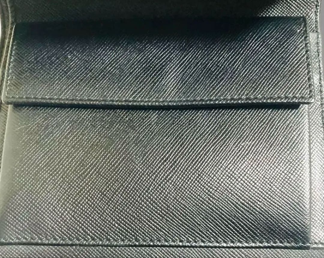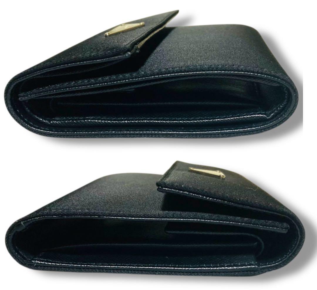 PRADA 美品 プラダ 3つ折り 財布 ユニセックス デザイン ナイロン ロゴ ギャランティ 三角 プレート ブラック 黒 メンズ レディース