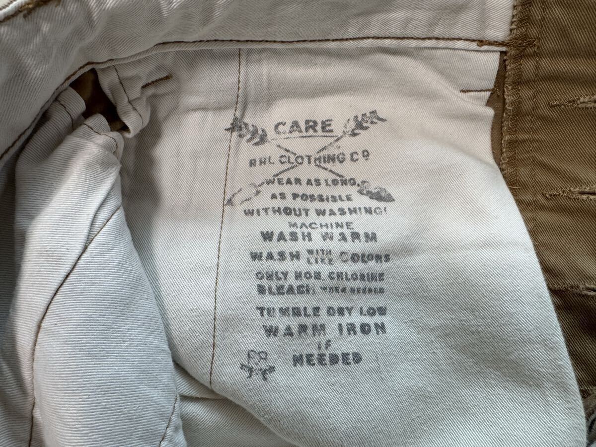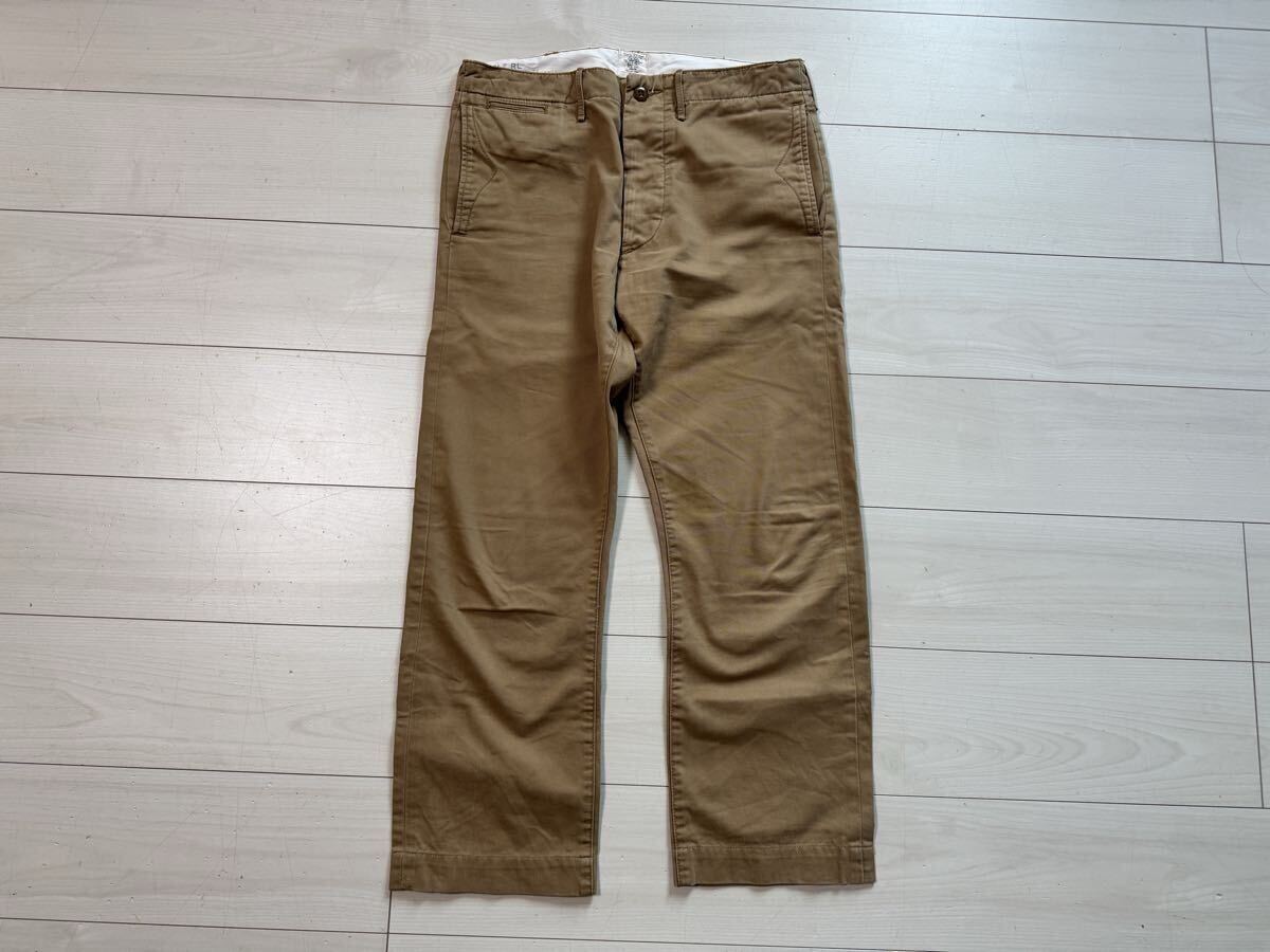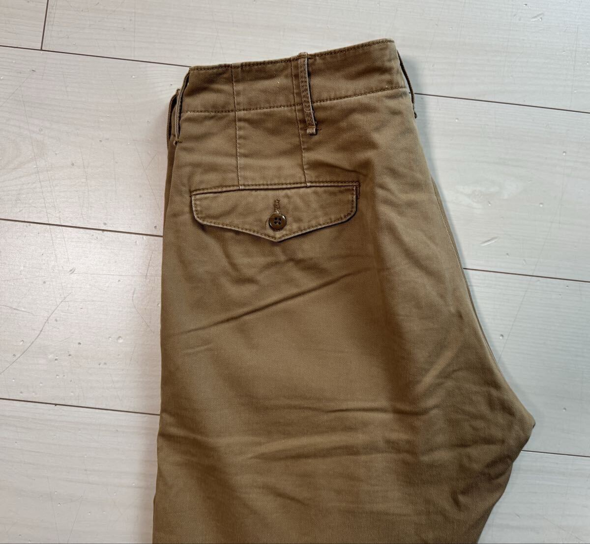RRLの40s米軍オフィサーパンツをインスパイアして作られたチノパンツになります。さすがRRLだけあって、作りは堅牢、40年代の特徴でもあるコインポケットまで丁寧な作りになっています。購入後、ほとんど履いていなかったので、これからのエイジングも楽しみな商品かと思います。