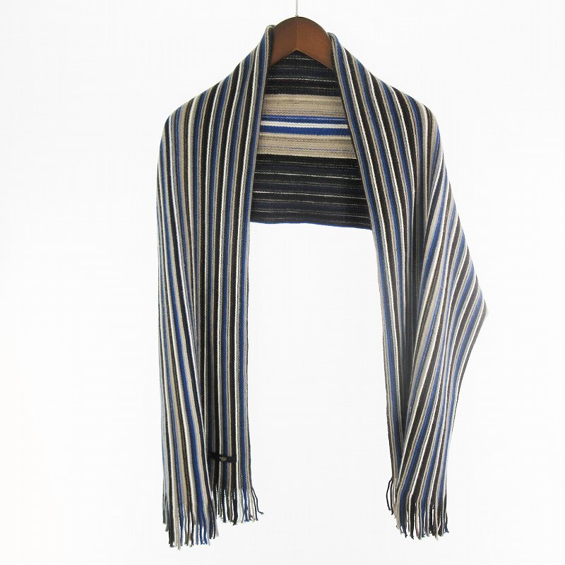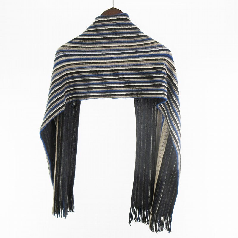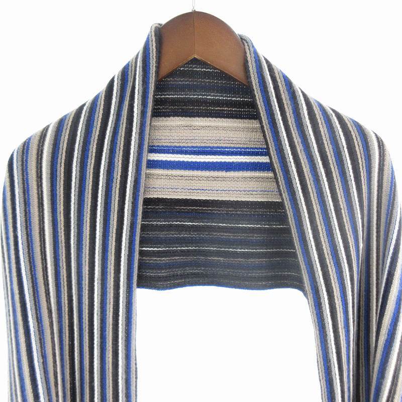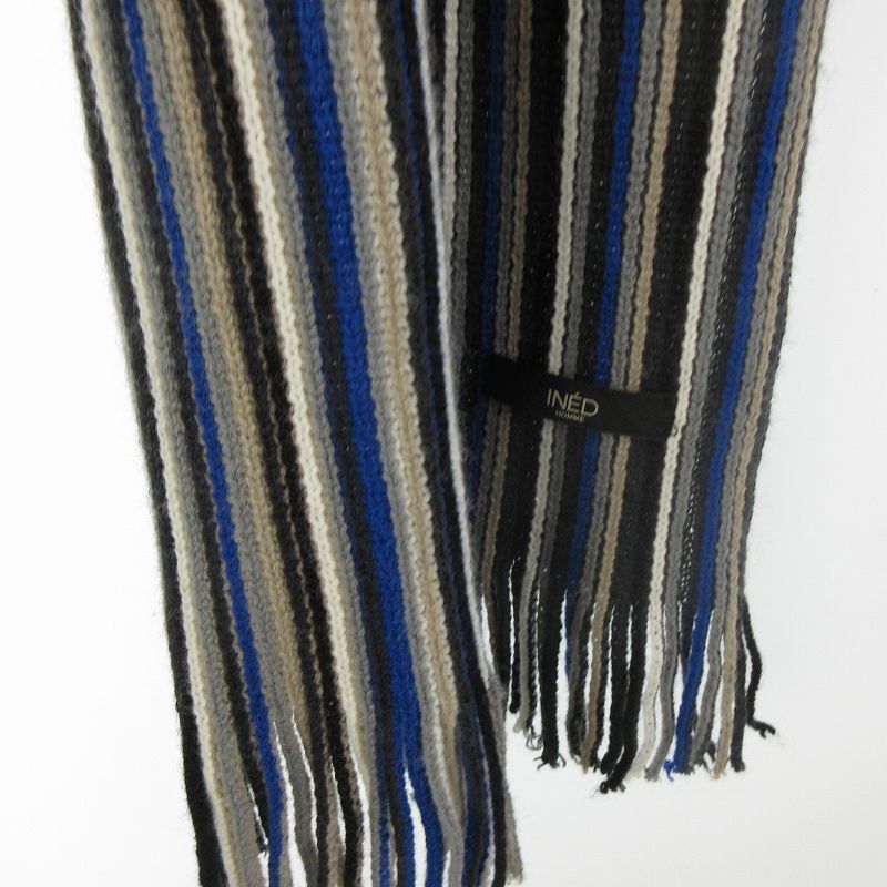 イネド INED HOMME オム マフラー ニット ボーダー ベージュ ブルー ブラック ウール 150cm×30cm メンズ