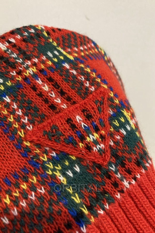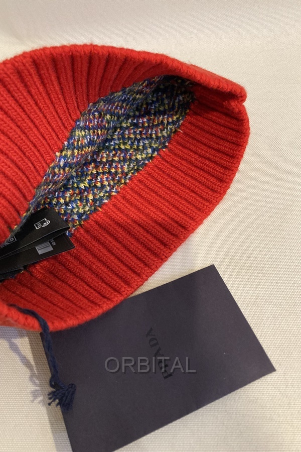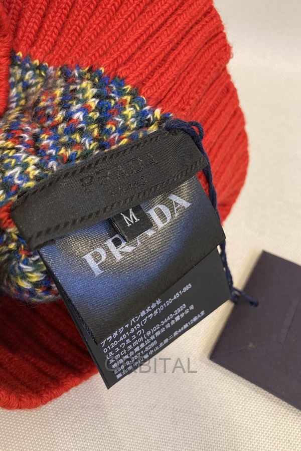 PRADA プラダ 未使用 ウールカシミヤチェックニットキャップ ビーニー 赤 柄 ニット帽 帽子 サイズ M 44cm 国内正規