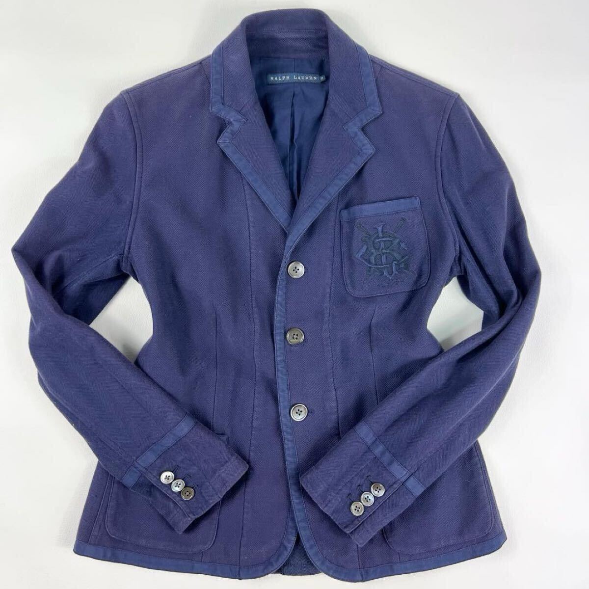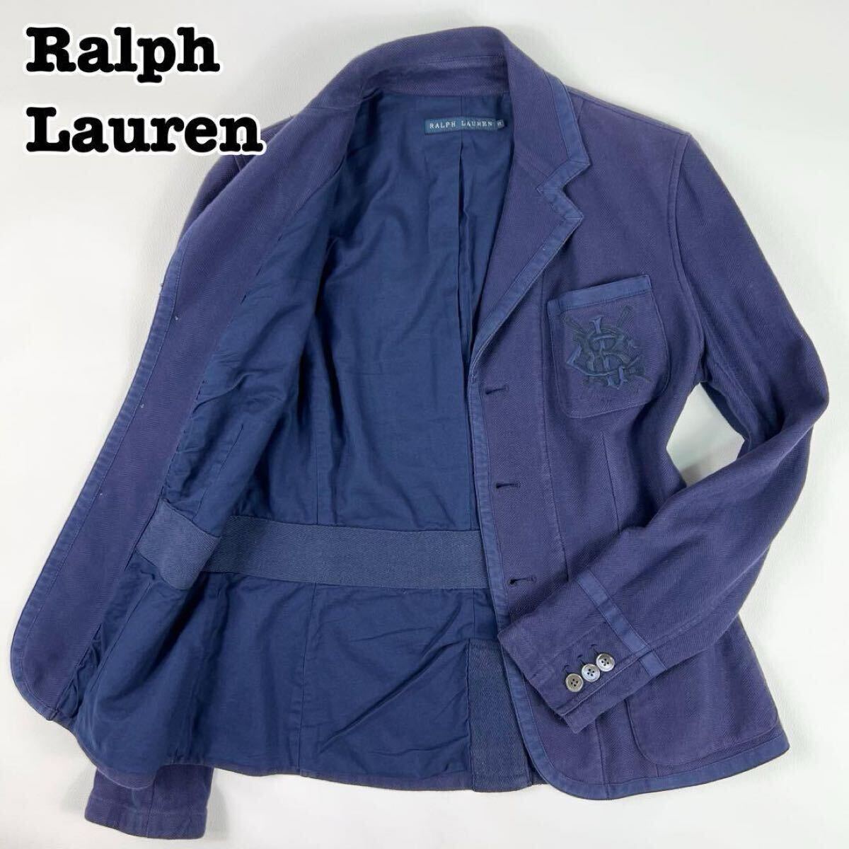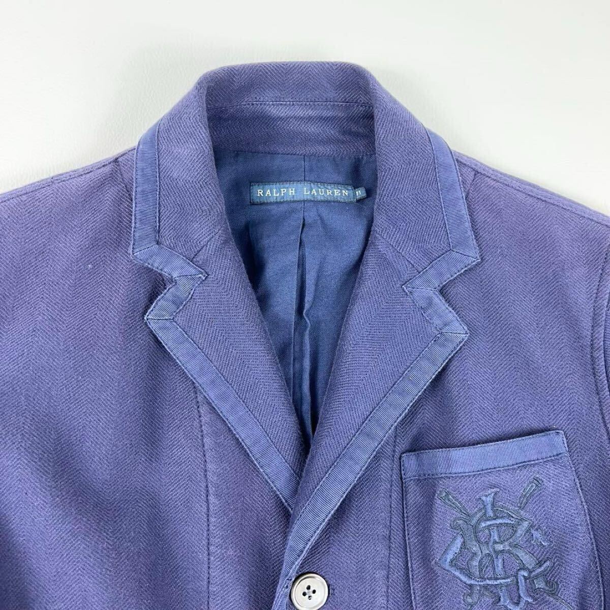 Polo Ralph Lauren ポロラルフローレン ジャケット テーラードジャケット ヘリンボーン シェルボタン コットン 刺繍 ロゴ ヴィンテージ ブルー ネイビー 紺 紫 メンズ 表記11サイズ