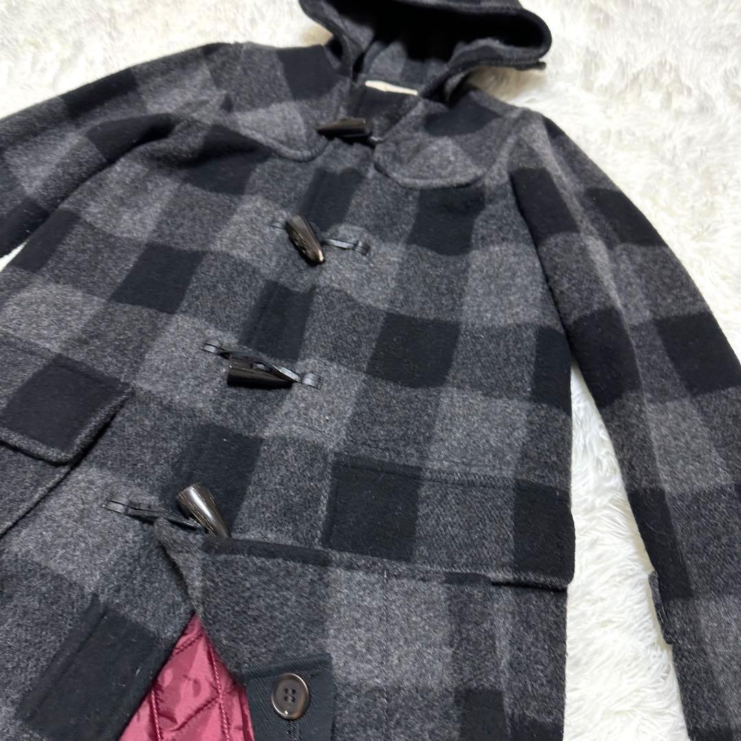 目を惹く上品なチェックのダッフルコートです。これからの季節に活躍すること間違いなし。