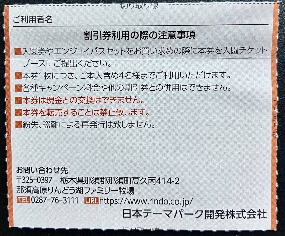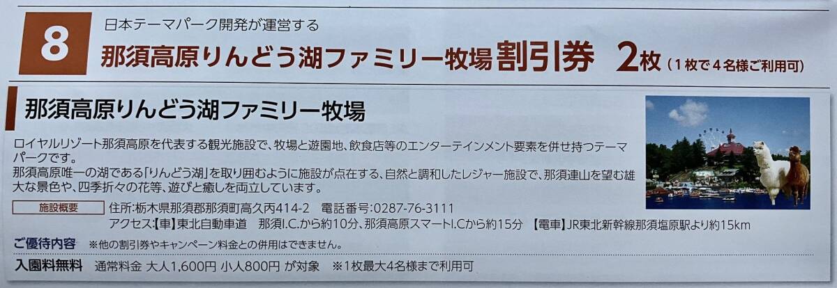 | 日本スキー場開発 那須ハイランドパーク&りんどう湖ファミリー牧場割引券 各1枚 | |