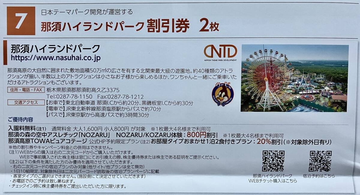 | 発送詳細 | [発送内容一覧] 日本スキー場開発 株主優待那須ハイランドパーク割引券 1枚 日本スキー場開発 株主優待那須高原りんどう湖ファミリー牧場割引券 1枚 [発送方法] ミニレターにて発送いたします。 |