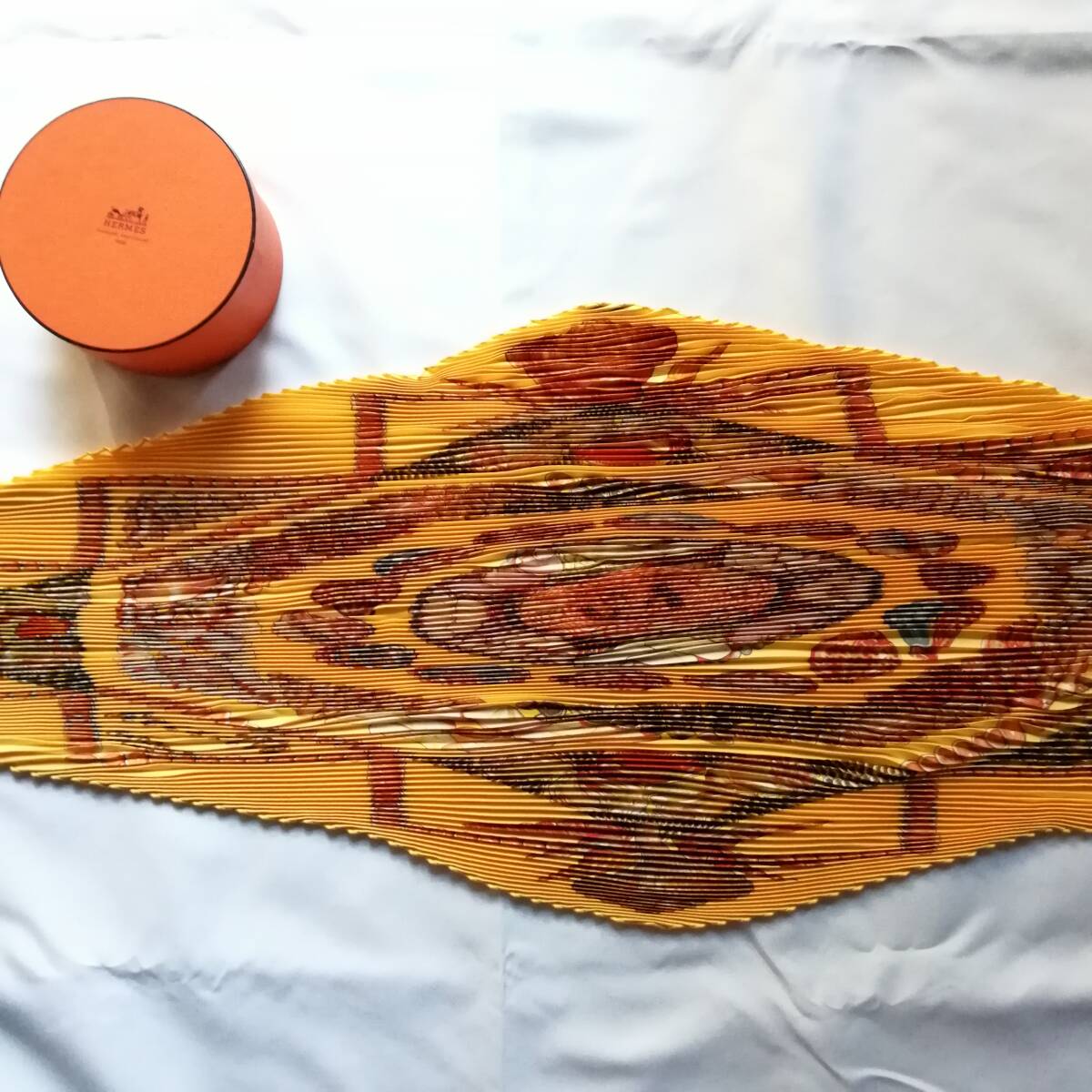 【美品!送料無料!】エルメス HERMES スカーフ カレ90 プリーツ 黄色