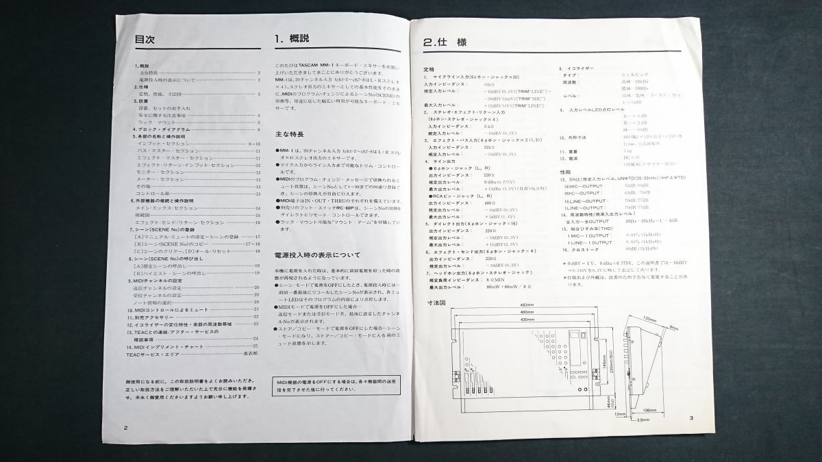 | 『TASCAM(タスカム) KEYBORD MIXER(キーボードミキサー) MM-1 取扱説明書』1989年頃 ティアック株式会社 | |